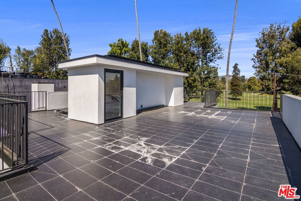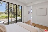 Beautiful newly completed 4-bedroom, 4.5-bath custom contemporary home featuring two stories, a pool, and an expansive rooftop deck with sweeping views of the golf course and the Getty Center. Set behind a fully gated front yard with an automatic driveway gate, the property showcases modern designer finishes throughout and is filled with abundant natural light. A grand oversized entry door leads into a bright living room highlighted by floor-to-ceiling windows overlooking lush front yard landscaping. The family room features a stacked multi-panel sliding door system that opens seamlessly to the backyard, where a newly built pool, patio, and built-in fire pit with seating create an ideal space for entertaining and effortless indoor-outdoor living. The sleek, modern kitchen is outfitted with tiled walls, open floating shelves, premium stainless steel appliances—including a Thermador six-burner range with griddle and pot filler—plus a large island with breakfast bar and quartz countertops. One en-suite bedroom is located on the main level, while upstairs offers three additional bedrooms, including a stunning primary suite with floor-to-ceiling glass doors leading to a private balcony with beautiful golf course views. The primary bathroom delivers a spa-like experience with custom tilework, quartz finishes, dual vanities, a soaking tub, and a separate shower. A staircase continues up to a spacious rooftop deck, offering breathtaking panoramic views of the city, treetops, golf course, and surrounding mountains. Ideally situated just minutes from Brentwood's San Vicente dining and shopping, Montana Avenue in Santa Monica, and the beach. Move-in ready and available now.