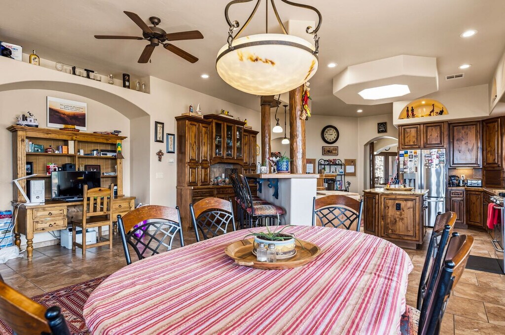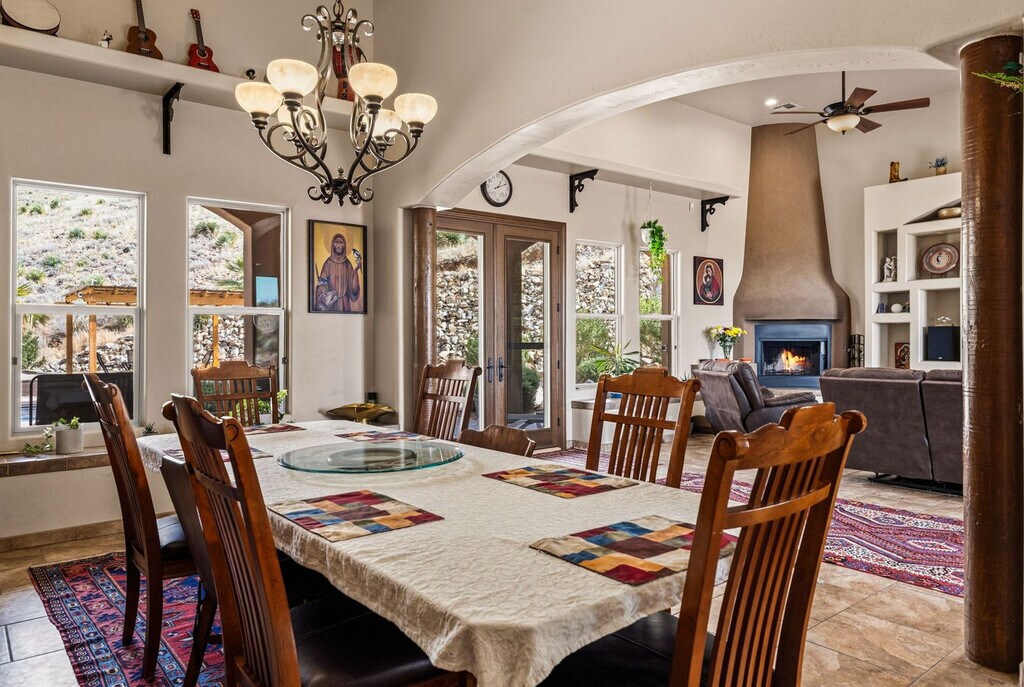 The advertised rate of $29,538/month is the lowest available price, based on a 30 day(s) stay with a move-in date of August 1, 2026. Rates vary depending on the duration of stay, season, and other parameters. For exact pricing and additional pricing components, please visit our website and enter your desired move-in and move-out dates. The rate is applicable when billed upfront; it can be higher if billed in multiple payments. Step into your ultimate Las Cruces escape and feel at home in this stunning 5-bedroom mountain retreat, set against breathtaking desert views. This secluded estate accommodates up to 12 guests and is designed for both intimate getaways and unforgettable events. This spacious 3,000 sq ft home features a large, airy layout with a well-equipped kitchen showcasing stunning mountain views. Gather around two indoor fireplaces, enjoy the outdoor fireplace, or unwind by the fire pit under the wide New Mexico sky. The chef’s kitchen is fully stocked with high-end stainless appliances, ample cabinetry, a large island with high seating, and a coffee maker with drip, Keurig, and French press options. Enjoy resort-style amenities, including two private saunas, a rooftop deck with seating and a fire pit table, a BBQ grill, an outdoor fireplace, a dining area, a sand area with horseshoe and corn hole, a fire pit and seating area, and outdoor gym equipment with mountain views. For indoor entertainment, there is a 55” smart TV, an indoor fireplace, a large plush sofa, a ping pong table, a pool table, a foosball table, air hockey, arcade games, a PlayStation, a dart board, and gym equipment. Up to 2 dogs are allowed for $125 per stay. The pool spa has complimentary heat, however, the fee to heat the pool is $200 per night. Renting a car is a convenient option to explore the area at your own pace. Located just 15 minutes from Las Cruces, this estate offers total privacy. Nearby attractions include the Organ Mountains–Desert Peaks National Monument with hiking, biking, and panoramic views, Dripping Springs Natural Area with scenic hiking trails and historic ruins, White Sands National Park, Prehistoric Trackways National Monument, and the New Mexico Farm & Ranch Heritage Museum. For dining, visit The Shed, D. H. Lescombes Winery & Bistro, La Nueva Casita Cafe, Si Señor Restaurant, and A Bite Of Belgium. Check-in is at 4pm and check-out is at 10am. Guests must be 21 years or older to book this property. There is a noise monitoring device on the property. Stays of 28 days or more may incur an additional cleaning fee. We kindly ask that your dog be crate-trained and that you pick up after them. Bedroom 4 includes a dedicated workspace. Parking is available in the driveway. [SI]