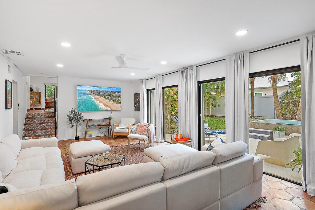 Beautiful 3 BR beach house on Singer Island close to shops and restaurants available this season! Spanish tile flooring in main areas,contemporary open kitchen with Quartz countertops,white cabinets,large dining area,huge bonus room downstairs with big screen tv,which leads to fenced yard and a large plunge pool which can be heated. Other features include: sunroom/screened porch,comfy sectional couch in living room which leads to the deck with sliding doors throughout the home on an oversized beautifully landscaped lot,high ceilings,guest retreat on the top floor which can sleep 4. 5 bikes provided for your use. Close to beach. Don't miss out on this beauty! Available May 1. All utilities included except electric. MLS ID B26012640