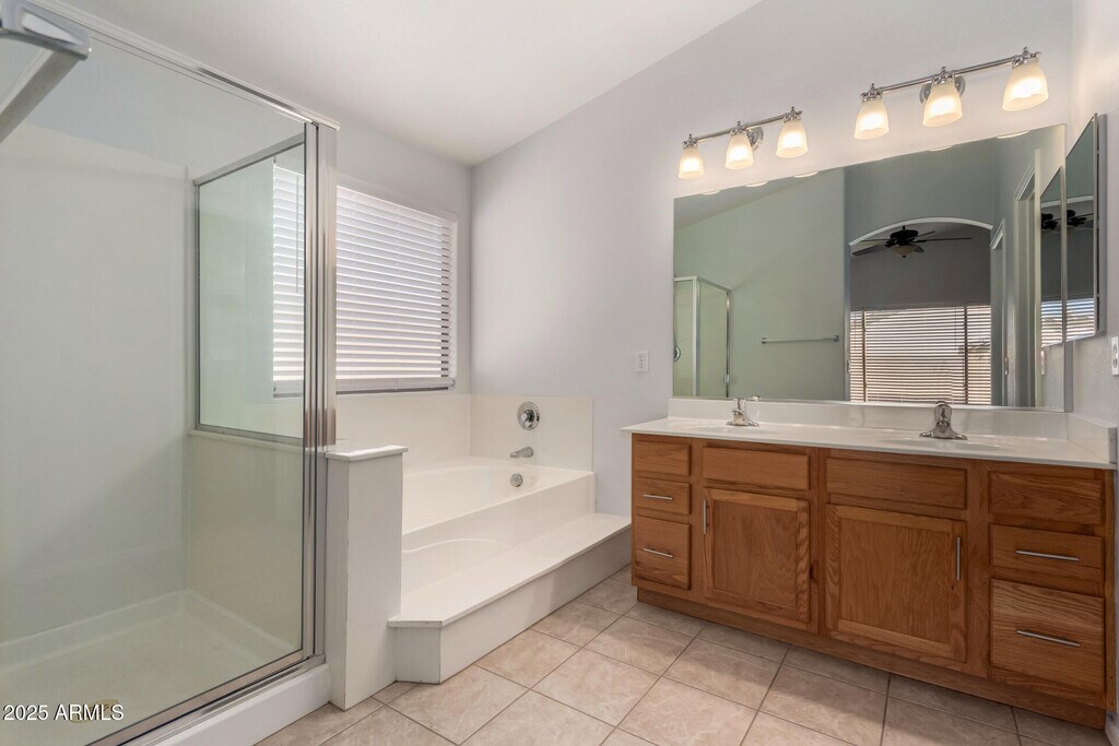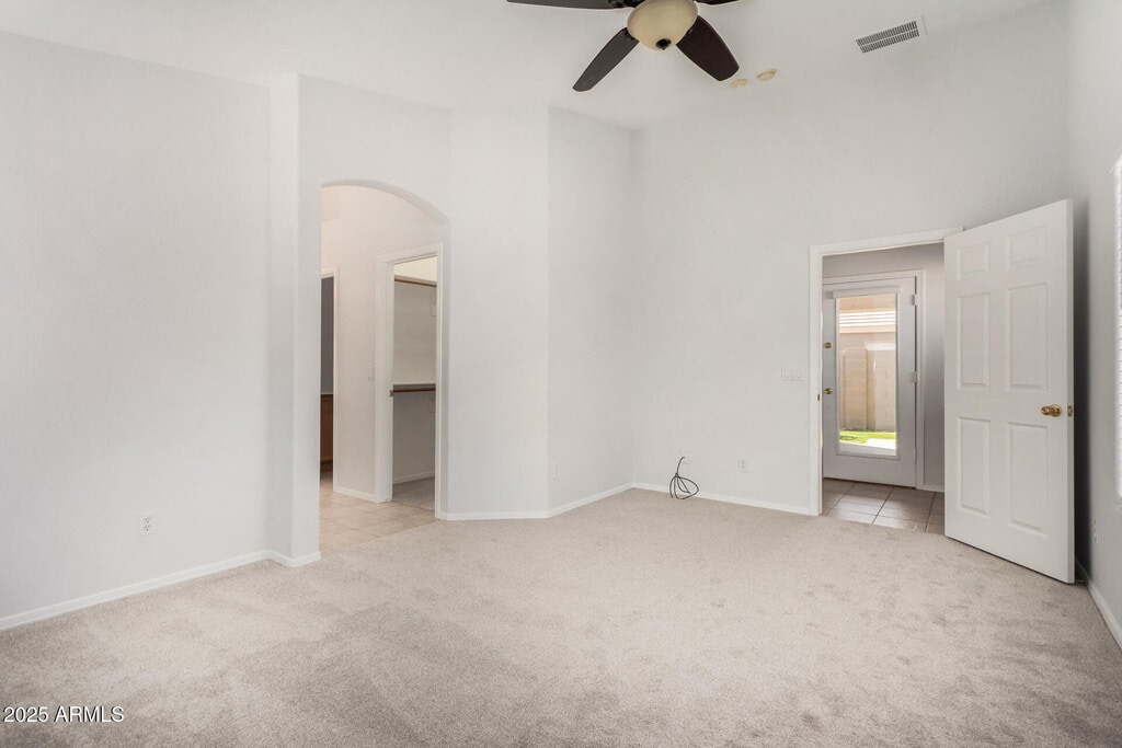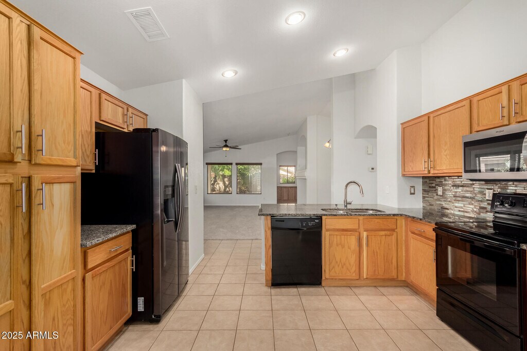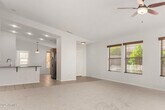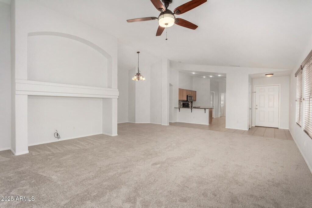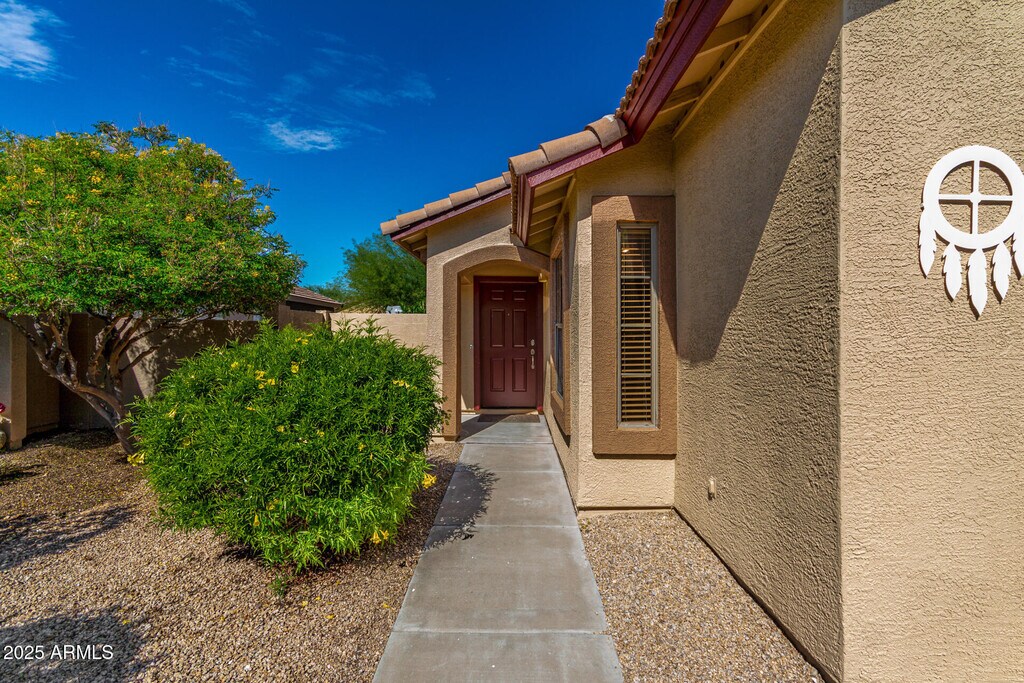 Discover the charm of this inviting single-level rental home in Estrella Mountain Ranch! Offering 3 beds,2 baths,a 2-car garage,and a mature landscape. The seamlessly flowing living & dining room makes entertaining effortless and enjoyable! Vaulted ceilings add to the airy feel,complemented by bountiful natural light,a neutral palette,and soft carpet & tile flooring t/out. The kitchen boasts built-in appliances,granite counters,a pantry,a mosaic tile backsplash,recessed lighting,ample wood cabinetry,a breakfast nook,and a peninsula w/breakfast bar. The main bedroom has an ensuite with dual sinks,separate tub/shower,& a walk-in closet. Tranquility awaits in the spacious backyard! Complete with a covered patio,artificial turf,palm trees,and well-laid pavers. Move-in ready! Sorry NO pets. assistive animals only.