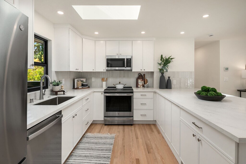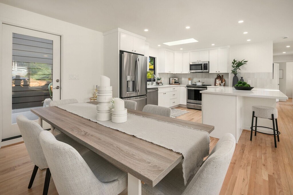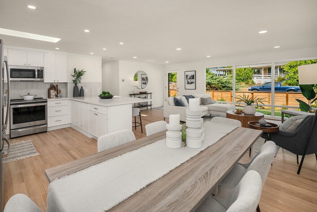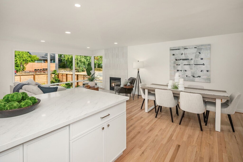 Oh So Pretty – And All Brand New! 12 month lease offered at $4,400/mo 17-18 month lease offered at $4,200/mo Be the very first to live in this beautifully reimagined 4-bedroom, 2-bathroom home in Seattle’s desirable Bitter Lake/Broadview neighborhood. Every inch of this home has been thoughtfully renovated with luxury finishes, modern systems, and refined details — from the heated bathroom floors to new windows, appliances, and high-tech cabling throughout. The main level offers an airy, open layout that connects the living, dining, and kitchen spaces — perfect for both everyday living and entertaining. The living room, wrapped in windows, bathes in natural light and centers around a striking tiled gas fireplace. The adjoining dining area opens onto a sunny deck, ideal for morning coffee or al fresco dining. The inspired kitchen shines with crisp quartz countertops, stainless steel appliances, and sleek cabinetry. Three generous bedrooms and an elegant bathroom with a walk-in shower complete this level. Downstairs, discover a spacious rec-room, the fourth bedroom, second full bathroom, and laundry area — perfect for guests, a home office, or extended living. The attached one-car garage offers convenience and additional storage. Set on a quiet street nestled between Bitter Lake and Broadview, this location offers easy access to Seattle favorites: Carkeek Park with its forested trails and wetlands, Greenwood’s lively scene, as well as effortless commuting via Highway 99 and I-5. One cat or one small dog considered with refundable pet deposit. No smoking. For more information, or to schedule a visit please contact Lisa Russell, Avenue One Residential, Seattle, WA at or . To review our application screening criteria, please copy and paste this link into your browser: #AvenueOneResidential #BitterLake #Broadview #NewConstruction