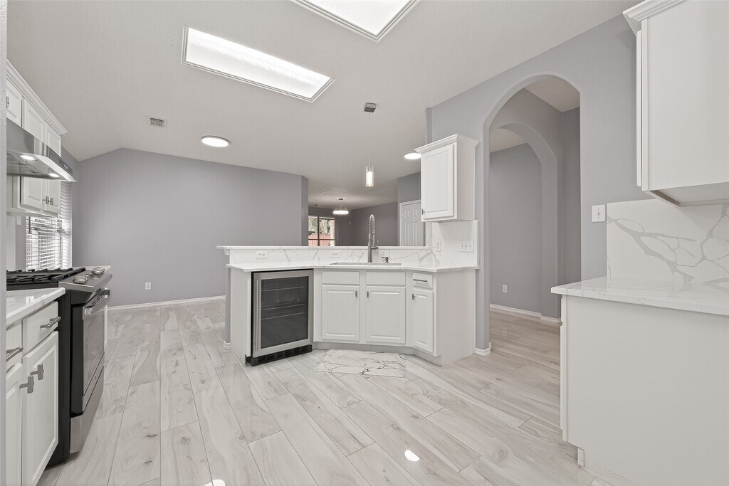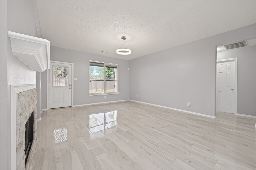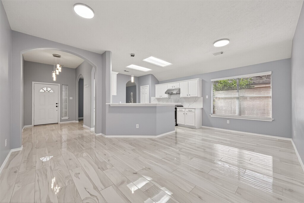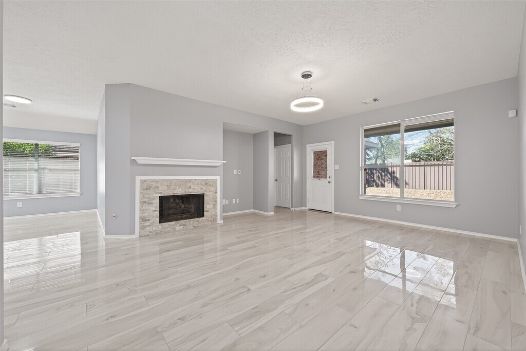 A MUST SEE Zoned to award-winning Humble ISD and conveniently located near shopping and dining,this well-appointed 3-bedroom,2-bath home sits on a spacious lot with mature trees and lush landscaping. The totally renovated open-concept kitchen,breakfast area,and living room create an inviting space ideal for entertaining,complemented by a cozy gas-log fireplace for cooler evenings. NO CARPET,NEW TILE FLOORING IN THE ENTIRE HOUSE Enjoy outdoor relaxation on the partially covered back porch or unwind in the primary suite’s jetted soaking tub. The secondary bedrooms are generously sized and thoughtfully positioned with a centrally located bathroom and nearby linen closet. A spacious,centrally located laundry room adds everyday convenience. Ideally located within walking distance to Eagle Springs Elementary School and just five minutes from Atascocita High School. MLS# 88327546