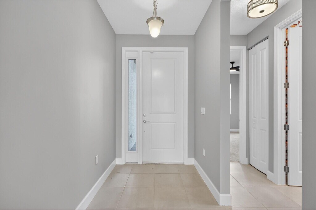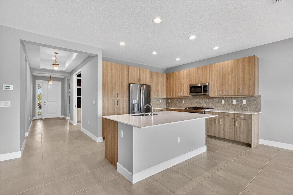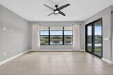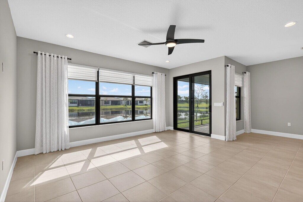 UNFURNISHED 8 MONTH MINIMUM RENTAL - This beautifully upgraded Sanderling model in GL Homes' highly sought-after Valencia Walk at Riverland offers the perfect blend of modern design and effortless Florida living. Built in 2024 and set on a scenic lakefront homesite,this light and bright single-story residence features 2 bedrooms plus a den,1,761 square feet under air,and an open-concept layout ideal for both everyday comfort and entertaining. The spacious kitchen showcases a large island,breakfast nook,soft-close cabinetry,upgraded quartz countertops,designer backsplash,and premium GE appliances including a vented microwave. The home is filled with natural light and offers serene lake views,along with stylish tile finishes in the kitchen and baths,upgraded lighting,and ceiling fans throughout. A flexible den with double pocket doors and a custom built-in wall unit with desk provides the perfect space for a home office or guest room. The primary suite is thoughtfully designed with dual custom built-out closets and a spa-like bath featuring tile to the ceiling,a decorative Listello accent,frameless glass shower enclosure,upgraded vanity lighting,comfort-height toilet,pocket doors at the commode,and a grab bar for added convenience. The guest bath is equally well-appointed with tile to the ceiling,Listello detailing,upgraded lighting,and a comfort-height toilet. Additional interior upgrades include enhanced carpet padding,ample electrical outlets for today's technology needs,and a well-equipped laundry room with utility sink. The garage features a durable polyaspartic floor finish and added storage shelving,while the exterior is enhanced with widened entry pavers for added curb appeal. Tenants have full community privileges,the same as a resident. Valencia Walk at Riverland offers a premier 55+ lifestyle with a stunning 36,000-square-foot clubhouse featuring a resort-style pool,outdoor bar,restaurant,ballroom,and vibrant social hall. Residents also enjoy access to Riverland's expansive amenities,including a 16-acre Sports & Racquet Club and a 5-acre Arts & Culture Center with studios for creativity and enrichment. The community boasts an impressive and growing racquet program with over 50 pickleball courts (with additional courts and covered play underway),tennis courts,and multiple bocce courts,along with a state-of-the-art fitness center,indoor and outdoor pools,and miles of scenic walking and golf cart paths. Ideally located near the Cleveland Clinic Tradition Hospital,Clover Park (spring training home of the Mets),and a wide array of dining,shopping,and coastal attractions,this home delivers the complete South Florida lifestyle. MLS ID B26012918