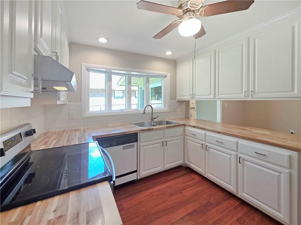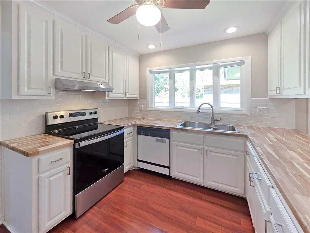 This stunning,recently renovated ranch in Walton,Georgia's top school district,boasts four spacious bedrooms and three full bathrooms. Situated on a large,level lot in East Cobb,it offers ample space and privacy. The expansive entry opens into a bright living room,sunroom,and kitchen area. The home features a neutral tan paint scheme with crisp white trim,new carpet,and laminate flooring throughout. Numerous windows provide abundant natural light and offer views of the private backyard. The large living room includes a ceiling fan and recessed lighting,with access to both the sunroom and formal dining room,making it ideal for entertaining. The sunroom,lined with windows across the back,has a glass door leading to the patio,built-in bookcases,and generous closet space. The updated kitchen is equipped with beautiful butcher block countertops,ample white cabinetry,stainless steel appliances,and a pantry,plus a breakfast nook. A full bathroom and sliding doors to the backyard are conveniently located off the kitchen. The bedroom area features an oversized master bedroom with a large ensuite bathroom,complete with dual sinks,a shower/tub combination,and a spacious walk-in closet with custom shelving. The additional bedrooms are also generously sized and share a full bathroom with dual sinks and a custom-tiled shower. A laundry closet in the hallway accommodates a full-sized washer and dryer. The oversized garage easily fits two large vehicles,offering additional storage space and side access to the backyard. The level backyard includes a storage shed and a privacy fence. Tenants are responsible for lawn care,weed control,pest control,and all utilities. Small pet ok with pet rent. Pool available paid by tenant.