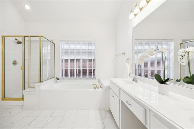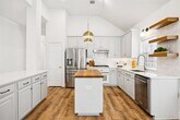 Welcome to this beautiful one-story home featuring an open-concept layout, high ceilings, and abundant natural light throughout. The light, modern color palette pairs perfectly with natural wood-tone luxury vinyl flooring that extends through all main living areas and the primary bedroom. This home offers 3 spacious bedrooms and 2 full baths, including an oversized primary suite filled with sunlight. The functional floor plan includes a generous kitchen with elegant white quartz countertops, an island, and ample counter and cabinet space—perfect for meal prep and entertaining. A cozy breakfast-dining area sits just off the kitchen, which flows seamlessly into the bright, airy living room complete with a warm, inviting fireplace. Step outside to enjoy a covered patio and a beautifully landscaped, private backyard—ideal for relaxing or hosting guests. For added convenience, the home comes fully equipped with a refrigerator, beverage fridge, washer, dryer, and a new AC unit. Located in an unbeatable area, you’ll be just minutes from the airport, popular retailers (Walmart, Target, Sam’s, Kohl’s, the upcoming H-E-B, and more), top-rated restaurants, parks, canals, and several golf courses—all within 10 minutes—and only 20 minutes from downtown Dallas.