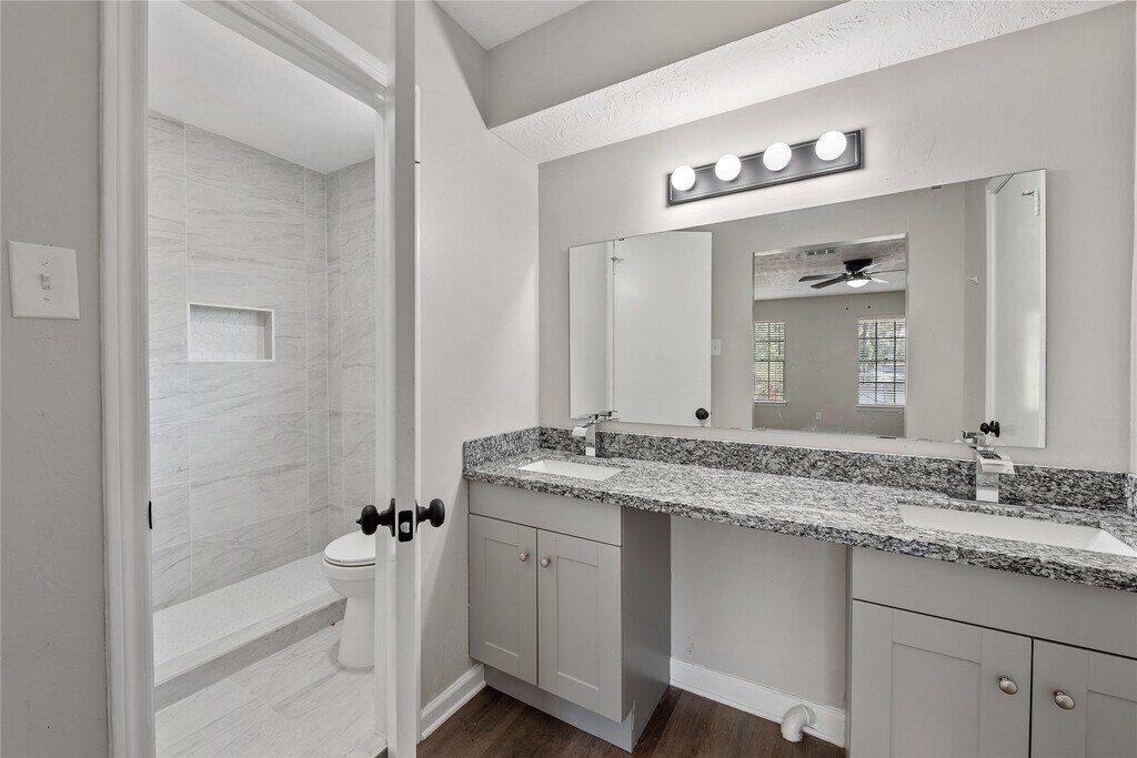 Fully renovated & move-in ready! This home offers laminate flooring throughout (no carpet),fresh paint,recessed lighting & a spacious layout. Large living room w/ wall-mounted fireplace & formal dining. Updated kitchen features granite counters,subway tile backsplash,new cabinets,SS appliances & breakfast nook. Primary suite includes his-and-hers closets,double sinks & walk-in shower. Guest bath offers soaking tub; secondary bedrooms are generously sized. Bathrooms fully updated. Laundry room has built-in sink. Other highlights: new staircase,high-efficiency A/C,detached 2-car garage,long single-wide driveway & oversized backyard. Located in desirable Cy-Fair ISD,minutes from 290,shopping,hospitals & walking distance to community amenities. Style,comfort & convenience in one great package! Contact us today and make it your home MLS# 91708646