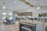 Welcome to a cozy yet spacious home designed for comfort and modern living. As you step through the front door,you're greeted by an inviting atmosphere with an open concept layout that seamlessly integrates the living room,dining area,and kitchen. Adjacent to the living room is the kitchen,featuring a stylish bar top that serves as a focal point and a convenient space for casual dining or mingling while preparing meals. The kitchen is equipped with state-of-the-art appliances,ample storage space,and sleek countertops,making it a chef's delight. The two bedrooms are thoughtfully designed retreats,each offering privacy and comfort. The master bedroom boasts a luxurious en-suite bathroom,complete with a spacious shower. The second bedroom is equally charming and is served by a well-appointed guest bathroom. Community offers a gated entry,clubhouse,fitness center,pool and lawn care all in the HOA.