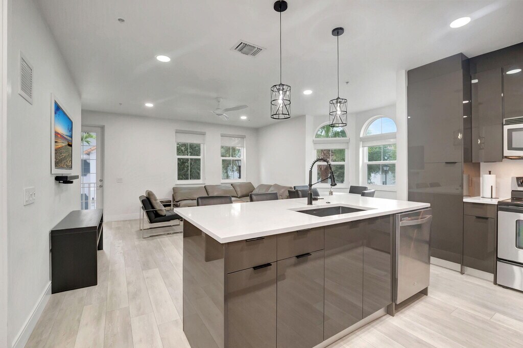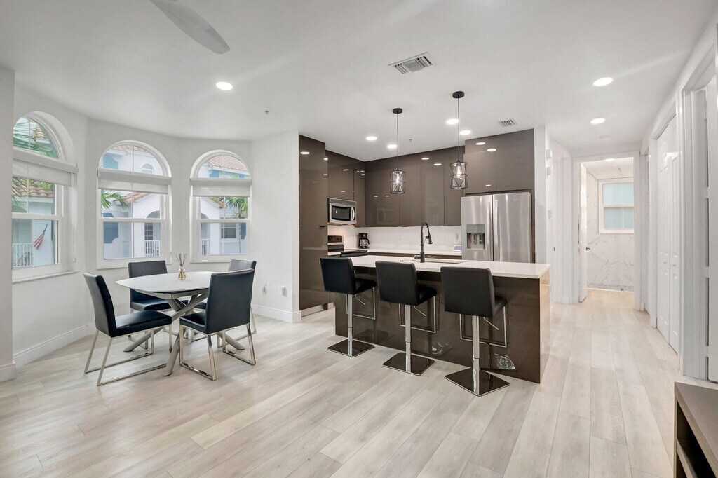 Internet and CLean Service is Included. Modern partially furnished or unfurnished. Internet and cleaning services included. Meticulously Renovated Corner Unit Discover this stunning corner unit,thoughtfully renovated and featuring impact glass windows. This expansive multilevel residence boasts three spacious bedrooms,two full baths,and two half baths,along with a double garage and driveway--offering plenty of room for both relaxation and entertainment. On the first floor,a versatile flex space awaits,complete with a convenient half bath--ideal for a home office,an extra bedroom,or a lively game room. The possibilities are endless! Step outside and enjoy a wealth of community amenities,including a playground,a sparkling pool,and a fully equipped fitness center. The vibrant local scene offers excellent walkability to a variety of shops,delightful restaurants,and cozy coffee houses. Plus,you're just a short drive away from stunning beaches,allowing you to soak up the sun just steps from your front door. Conveniently located near I-95,this home provides quick access to downtown Delray Beach and three international airports,making it perfect for both work and leisure. Don't miss your chance to experience the best of modern living! MLS ID R11158898