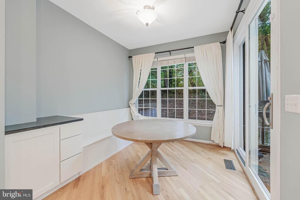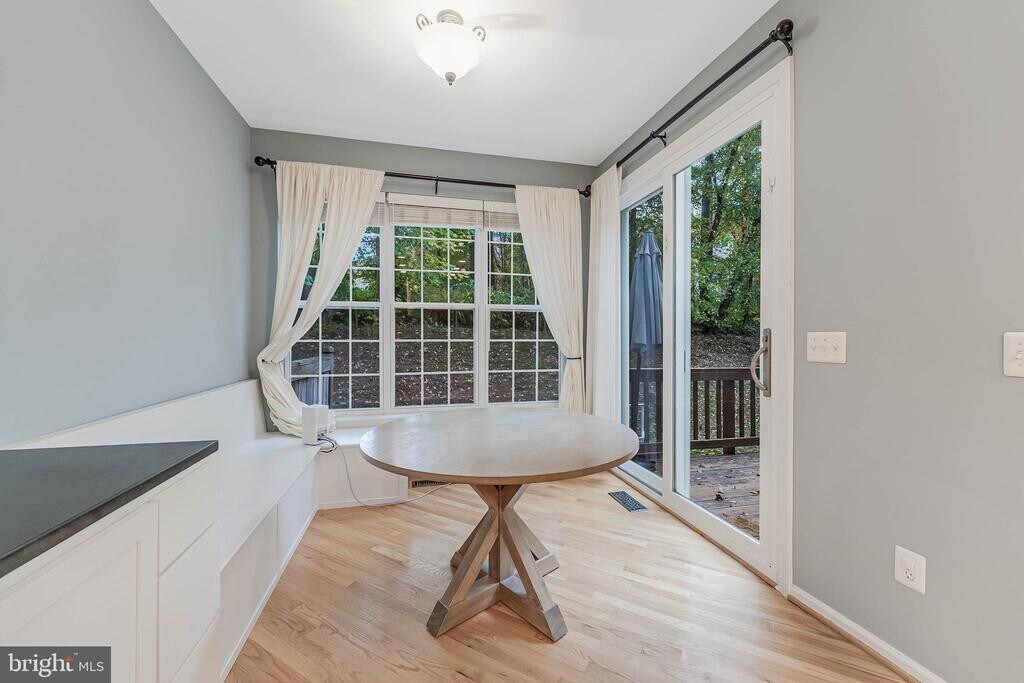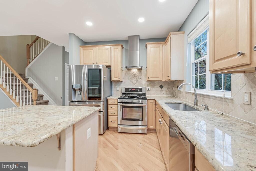 Welcome to 1274 Wild Hawthorn Way, an elegant end-unit townhome in the heart of Reston offering a perfect blend of luxury, comfort, and modern design. This beautifully maintained residence features a one-car garage and a spacious, light-filled layout enhanced by thoughtful upgrades throughout. Step inside to find brand new carpet and gleaming hardwood floors. The open-concept kitchen and living room create an inviting space ideal for both everyday living and entertaining. The renovated kitchen is a chef’s delight, featuring granite countertops, a large center island, and stainless steel appliances. A charming breakfast nook with built-in seating offers a cozy spot for morning coffee, while the adjoining living area with a gas fireplace provides warmth and ambiance. From here, step out onto your private deck/balcony, perfect for al fresco dining or quiet relaxation among the trees. The living and dining area also includes a wet bar, adding a touch of sophistication and convenience for entertaining. Upstairs, the primary suite is a true retreat with a fully renovated spa-style bathroom featuring modern fixtures, elegant tilework, and a soaking tub. Custom Elfa closets provide abundant storage, while the upper-level laundry room makes daily routines effortless. Additional highlights include bump-outs on the side and back of the home that expand the living space and fill the rooms with natural light. The walkout lower level offers incredible versatility—perfect for a home office, gym, or recreation room—and opens to a private outdoor area surrounded by mature landscaping. Located in one of Reston’s most desirable neighborhoods, this home offers access to miles of walking trails, parks, lakes, pools, and top-rated schools, all while being minutes from shopping, dining, Reston Town Center, and major commuter routes.