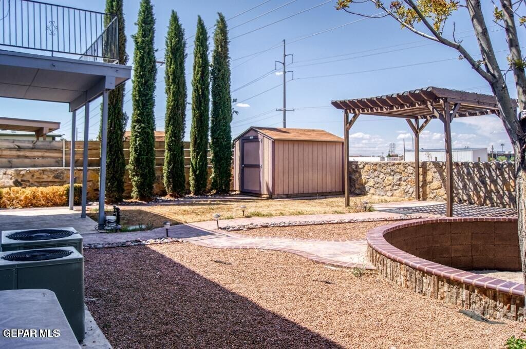 check out !!! this 4 bedrooms,3 baths home. perfectly situated near Fort Bliss,William Beaumont Army Medical Center!!! very close to gyms,restaurants,entertainments,water park,and so much more ! The interior has been recently upgraded with new floors and The entire exterior was freshly painted. The modern kitchen features granite countertops throughout,stainless steel appliances,and ample space! The dining and 2 downstairs living rooms provide even more space for every occasion. The master suite has a large walk-in closet and a balcony with city & mountain views! The backyard is landscaped with large shade trees and a sitting area,and a fun place to play. There is also a pergola and a storage Shed in the yard. This is a perfect house for you !