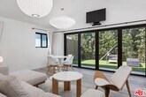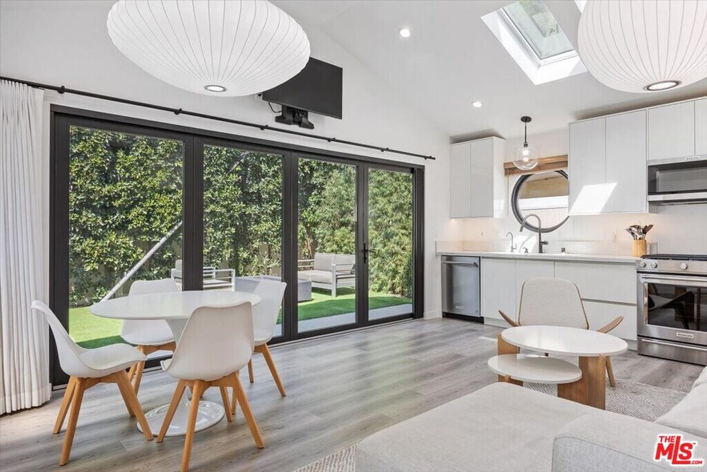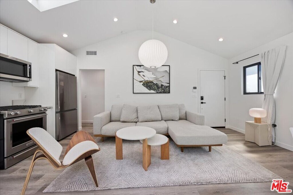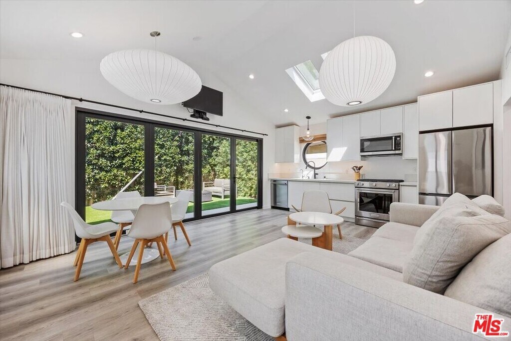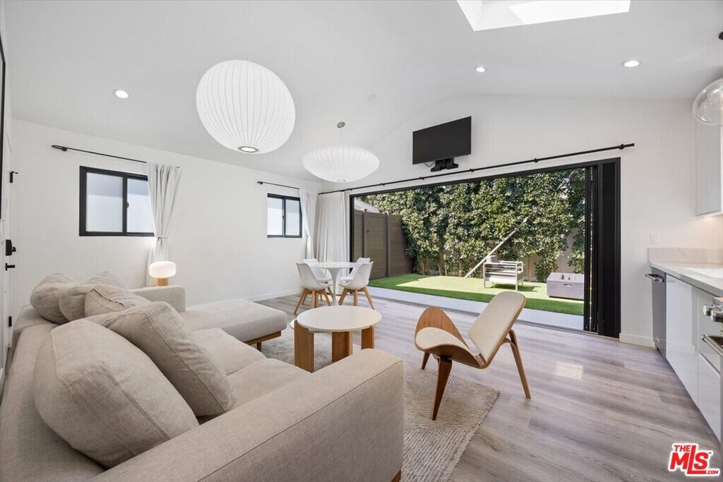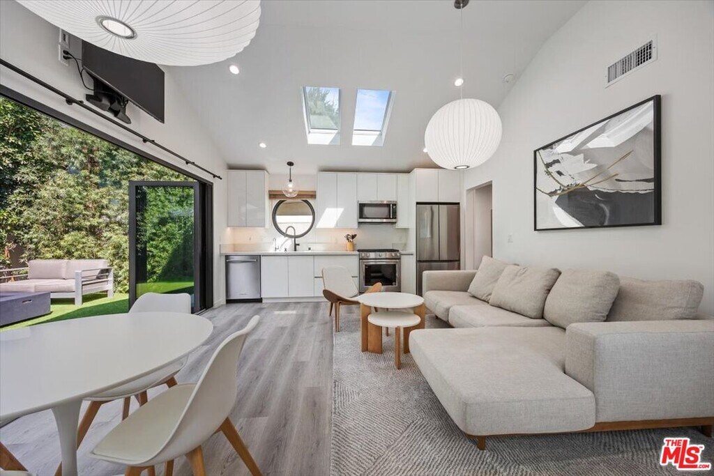 Stunning ADU, gated and furnished, 900 sq ft. 2 Bedrooms and 2 bathrooms of contemporary elegance in the heart of Studio City. Completed in 2023, this ADU features an expansive open-concept floor plan with soaring ceilings and streams of light in the living room, featuring a wall of glass Panoramic folding doors that open completely to the private artificial turf low maintenance yard, to allow for a perfect indoor/outdoor organic living and entertaining experience. At the heart of the home is a modern chef's kitchen, complete with Stainless Steel appliances - Samsung Refrigerator and KitchenAid stove, Dishwasher and microwave.Two good sized bedrooms and primary suite with en suite bathroom with large stall shower, Confetti floor and double vanity. The second bathroom has a shower over the bathtub and Langston Porcelain concrete floor finish and metro Subway wall tiles.Other features include Luxury Vinyl Plank floors, Central AC, 2 Flat Screen TV's that have automatic lift mechanisms, Stackable GE washer and Dryer, unique design porthole window, and modern fixtures and fittings and furniture, included. Located away from the main house at the back of the lot. Excellent location near Beeman Park and Erewhon Grocery Store and other stores in the popular Sportsman's Lodge. Easy access to the Westside. MLS# 25592035
