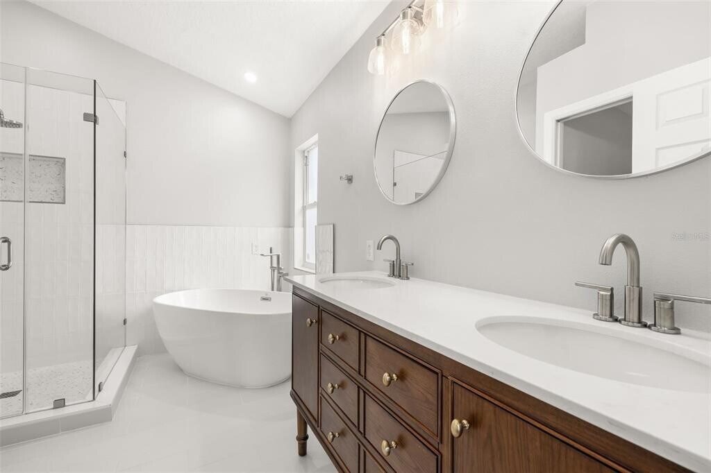 For Rent in South Orlando,north of Hunters Creek. Centrally located home with 3 bedrooms and 2 bathroom. As soon as you walk in,be impressed by the formal living and dining space with plenty of natural light. Home has been renovated including a beautiful kitchen with white shaker cabinets and quartz countertops and stainless steel appliances. The laundry room has a washer and dryer for your convenience. The main bedroom has a remodeled bathroom with dual sinks in the vanity,a shower stall and separate modern soak in tub,separate toilet room and walk in closet. The secondary bedrooms and bathroom are on the opposite side of the master and features a remodeled bathroom. The yard has been fenced and the home has a screened in porch. No pets. Heritage Place is a deed-restricted,single-family residential neighborhood in South Orlando/Hunters Creek,located just off S John Young Parkway near the SR-417 interchange. Easy access to The Loop shopping center,and is situated near Shingle Creek. MLS# S5143278