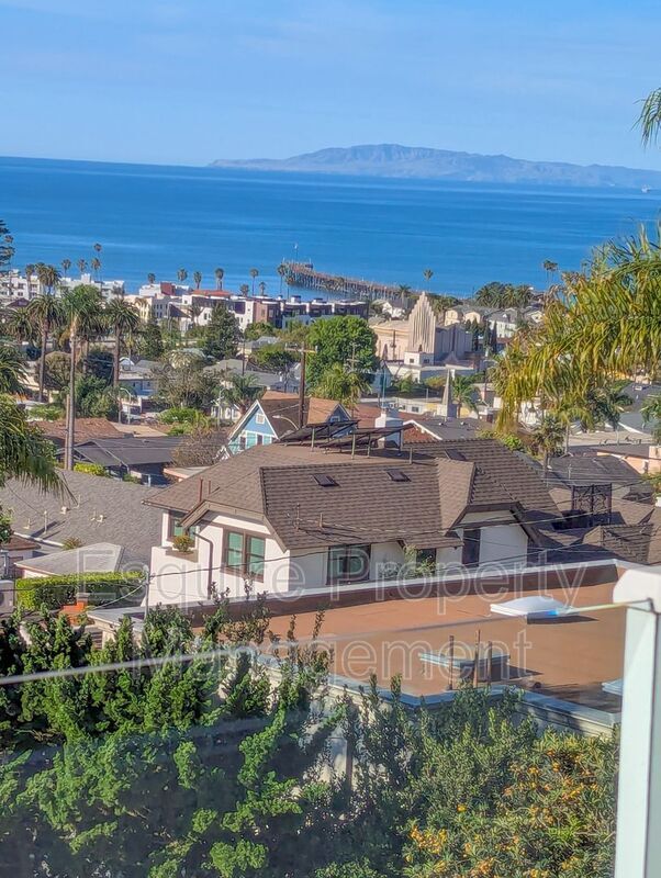 Come enjoy one of the best views in the City of Ventura! This property is uniquely situated on an expansive, almost quarter acre lot, with no direct neighbor in front, allowing for unobstructed views and privacy. Enjoy unobstructed 180° views of the coastline, ocean, islands, and twinkling city lights while being just a short walk from the beach and Ventura's vibrant downtown. Thoughtfully arranged to capitalize on the views, the living room, kitchen, and primary bedroom are located upstairs, with two secondary bedrooms on the lower level. The sunlit living room showcases bamboo flooring and a dramatic wall of windows with a glass French door opening to the view deck, offering stunning views, boat-watching, and breathtaking sunsets. The primary suite features an en-suite bath and a large sliding glass door that opens to a private backyard. The remodeled kitchen is thoughtfully designed with granite countertops, stainless steel appliances, and a walk-in pantry. Attached two-car garage with a 240V electric car charger, ample storage, and two additional private parking spaces. The drought-tolerant landscaping, enhanced with irrigation, bursts into vibrant color each spring. Rental Details/Screening: Pets may be considered at the landlord’s discretion with a $50 monthly pet rent; 12-month lease term; Renters insurance is required; All applicants must have a credit score above 650; Total household income of applicants must be at least 2.5 to 3xs the rent amount; All adults must apply ($35 non-refundable application fee per adult); All information is believed to be accurate and up to date. Price, terms, offering, and availability are subject to change. Changes to the home exterior, interior, landscaping, or appliances may have occurred since the pictures were taken. Amenities: Dishwasher, Refrigerator, Reverse Osmosis Unit, Attached Two Car Garage, Gardener Service, Range, Washer/Dryer (No warranty), EV 220 Outlet