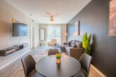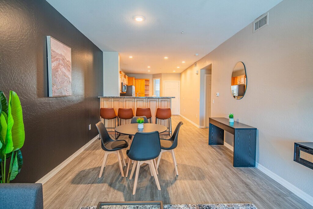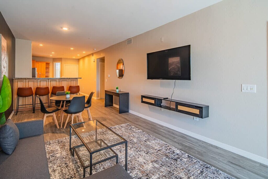 Feel at home in this elegant apartment located in the heart of Tempe, offering easy access to renowned breweries and local hotspots. Enjoy the vibrant sights and memorable scenes that only Tempe can offer, all from the comfort of your home away from home. Relax in this 2-bedroom unit featuring a modern open-concept design that seamlessly blends the living and dining areas with the fully equipped kitchen. The living room is perfect for unwinding with friends and family, complete with a stylish interior, a sofa bed, a 4K 58" HDR Smart TV, and a coffee table. The kitchen is equipped with a microwave, stove, oven, refrigerator/freezer, dishwasher, toaster, coffee maker with essentials, electric kettle, sink with hot and cold water, glasses, silverware, pots and pans, and a dining table with chairs. The bedroom offers a queen-size bed with pillows, linens, and sheets, along with an office desk and chair and reading lamps. The full bathroom is private and stocked with essential toiletries. Parking is available on the premises, with instructions provided at check-in. For guests with pets, an additional cleaning fee is required per pet, with rates varying based on the length of stay. There is a 2-pet maximum, and only cats and dogs are allowed. Breed restrictions apply, and a $500 fee will be imposed if pets are brought without prior notification. This prime location places you near a renowned brewery and famous local hotspots, providing an authentic Tempe experience. Explore the vibrant neighborhood and enjoy the convenience of being close to everything Tempe has to offer. The safety and well-being of guests are prioritized with a thorough cleaning process after each check-out. Guest verification is required, including providing a government-issued photo ID and a valid credit card. A rental usage agreement must be signed, and noise monitors are installed to ensure quiet hours between 10pm and 8am. A strict no-party policy is enforced, with penalties for violations, including a $500 fine for smoking on the property. Early check-in/check-out may be accommodated for a fee, and lost or unreturned keys will incur replacement charges. [SI]