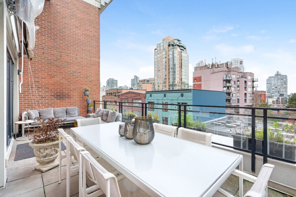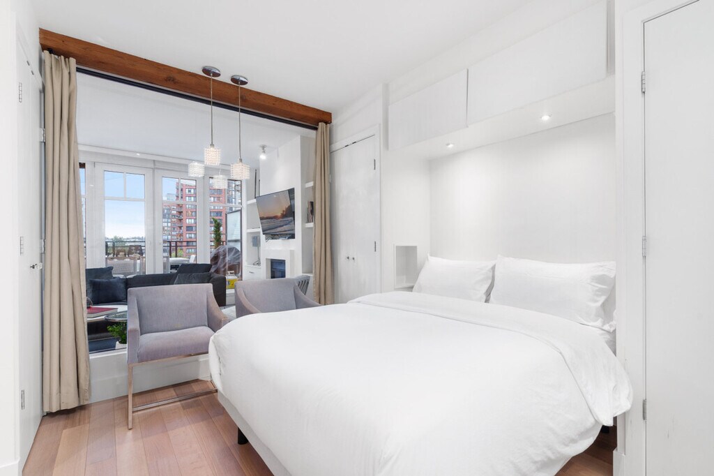 Experience elevated city living and feel at home in this stylish 2-bedroom, 2-bath sub-penthouse in the heart of Yaletown. Flooded with natural light, this home features soaring ceilings, exposed beams, and floor-to-ceiling windows that open onto a large private terrace. Building entry is elevator-accessed with secure fob entry. This home offers a light-filled living area with a fireplace and Smart TV. The modern chef’s kitchen features an island, premium appliances, and ample prep space. Enjoy the convenience of in-suite laundry, central air conditioning, and heating throughout. The expansive private terrace includes an outdoor dining set and BBQ. One secured underground parking stall is included. Located in one of Vancouver’s most desirable and walkable neighborhoods, this home sits in Yaletown, known for its vibrant yet refined atmosphere. Enjoy an excellent mix of acclaimed restaurants, cozy cafés, boutique shops, and everyday conveniences. The nearby False Creek seawall is perfect for morning walks or evening strolls, while the area’s central location makes it easy to enjoy downtown living without sacrificing comfort or quiet. Downtown Vancouver is an 8-minute drive, Sunset Beach is a 10-minute drive, and the Vancouver Art Gallery is an 8-minute drive. The nearest grocery/pharmacy is a 3 to 5-minute walk, and the nearest transit stops are a 3-minute walk. No smoking is allowed in the property and its vicinity. No parties, events, or large gatherings are permitted. Includes a dedicated workspace nook perfect for remote work or extended stays, and a dining area with seating for four, ideal for meals or casual work sessions. [SI]
