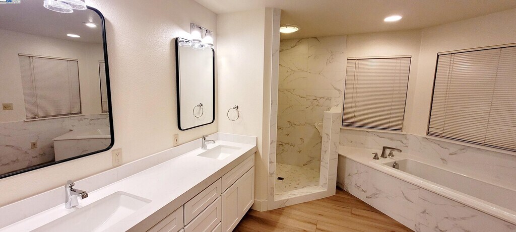 Make yourself at home in this superb single-level 3 bedroom executive home in the desirable community of Kottinger Ranch in Pleasanton. This spacious home with views of the hills offers 2,732 sqft. of living space with 3 bedrooms,2.5 bathrooms and a bonus space perfect for an office with bay window. The kitchen comes equipped with tile counter tops,double sinks,electric range,built-in oven,microwave,dishwasher and refrigerator. Flooring consists of beautiful luxury vinyl plank throughout the home. The oversized bedrooms provide generous closet space and are perfect for getting a good night's sleep. The newly remodeled master suite includes walk-in closet,dual vanity,soaking tub and roomy shower! And access to the back yard directly from the master room. Additional amenities: Beautiful courtyard entrance to the front doors,2-car garage,indoor laundry which includes a washer and dryer,3 skylights,windows throughout including 3 bay windows to enjoy views from all directions,fireplace,and state of the art new HVAC system. Beautifully manicured private back yard with grass,patio and stone benching. Gardening services included. Close proximity to acclaimed top rated Vintage Hills Elementary School. Easy commute access to I-580,I-680 and Highway 84.