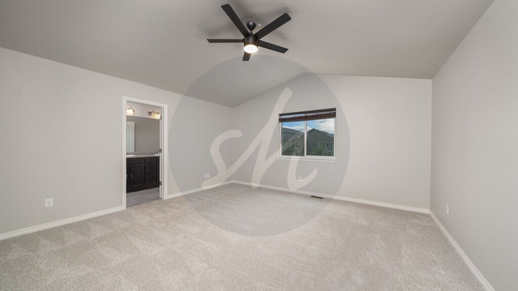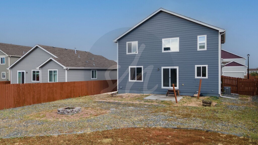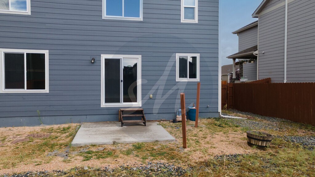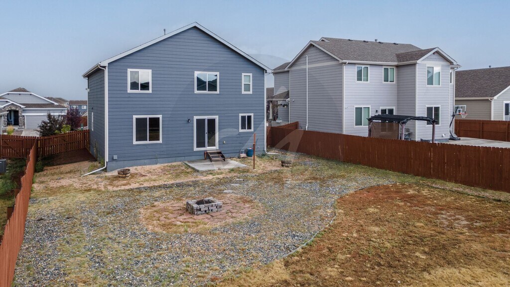 Welcome home to this four bedroom three bathroom home in Windingwalk at Meridian Ranch. The main level features elegant laminate hardwood flooring, a front office with half bath, and an open-concept living area flooded with natural light. The kitchen boasts stainless steel appliances, quartz countertops, a center island, and dining space overlooking the expansive backyard. Upstairs, three generous bedrooms share a full bath, while the primary suite impresses with vaulted ceilings, a 5-piece spa bath with soaking tub, and a spacious closet. Convenient upstairs laundry completes the upper level. The fenced backyard includes a built-in fire pit, and the 2-car garage features 240V EV charging. Enjoy resort-style community amenities including a rec center, golf course, pool, fitness center, parks, and trails—all minutes from shopping and dining. 3d Tour: