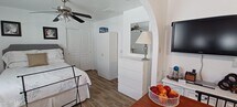 Available - All Utilities Included - Casita attached to a single family home. It has a wonderful fully paved Private yard with a BBQ and outdoor furniture. This Casita with Private courtyard entrance. Queen size bed with two closets. Full bath,Kitchenette with Microwave,dishwasher,Refrigerator,Keurig,toaster and grill,crock pot,blender,Fresh water dispenser. Decorated in White,black,and Gray interior. Has a small loveseat that pulls out to a twin bed if needed. It is Modern and well-lit with two double windows . This is in a High end Master Planned bedroom community,Vistancia offers the following: Biking,Hiking walking Trails,Tennis,Golf course and the V Tap restaurant.