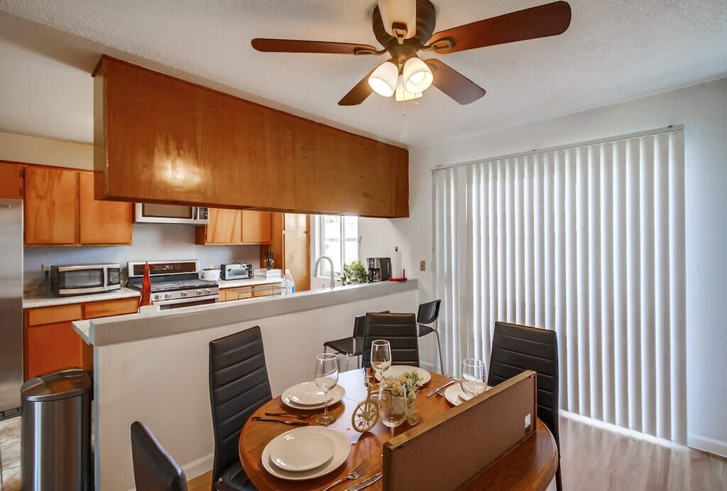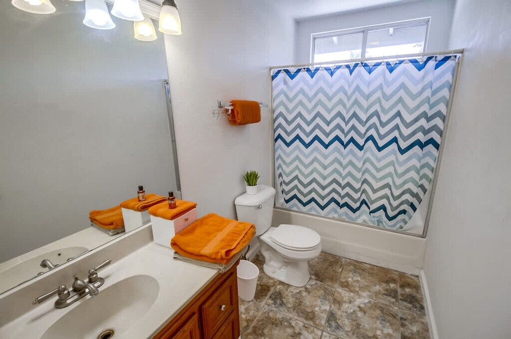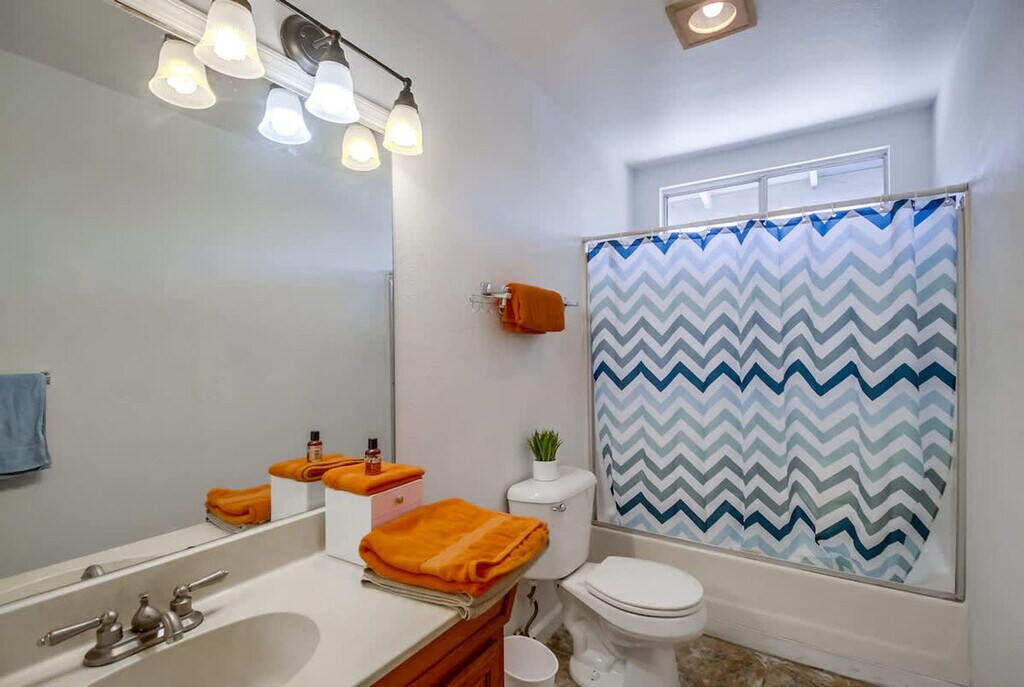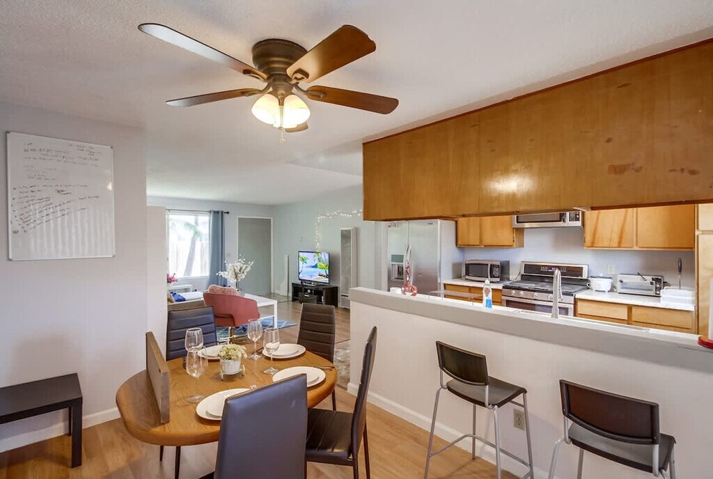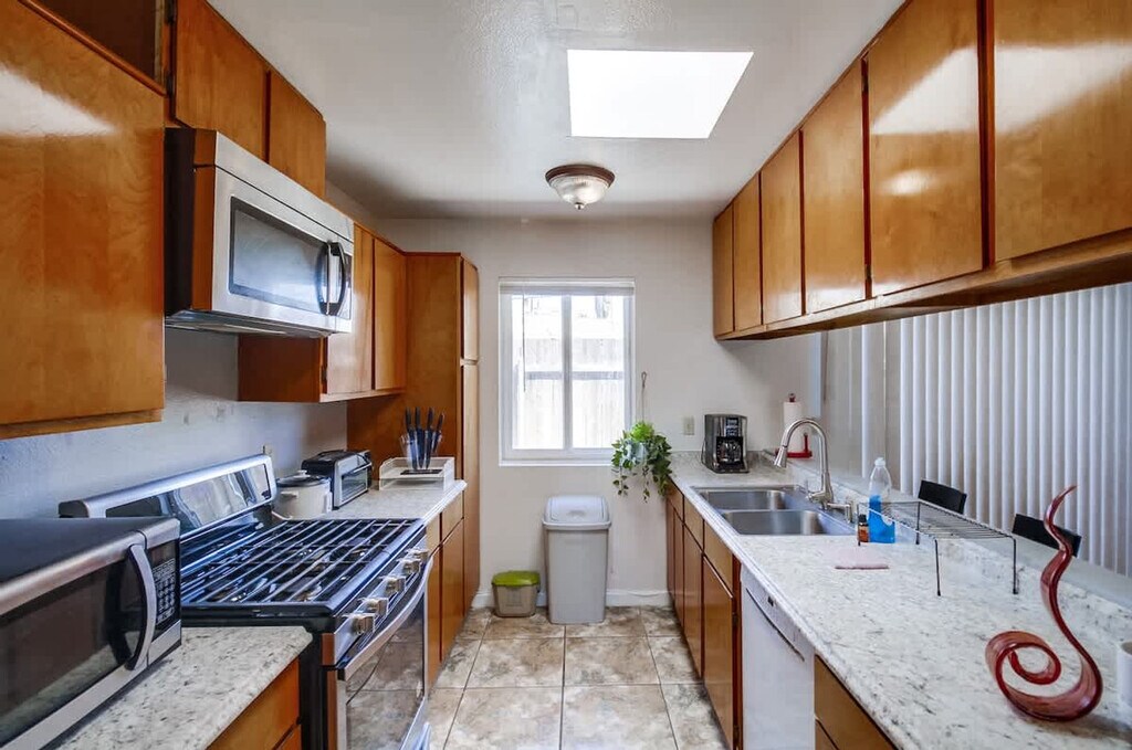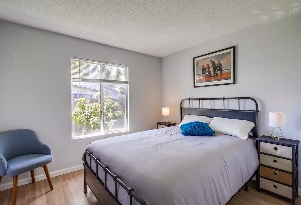 Feel at home in this spacious and cozy 3-bedroom home in Imperial Beach, offering 1,200 sqft of private space. The fully stocked kitchen features modern appliances including a gas stove, oven, blender, coffee maker, microwave, toaster, and fridge. Essentials like oil, coffee, sugar, and salt are also provided. The air-conditioned living room has cozy sofas and a flat-screen Smart TV with cable access and streaming options like Netflix, Disney+, and YouTube via Roku. An in-unit washer and dryer are available, complete with detergent. Convenient driveway parking is available for up to 2 vehicles. Pets are welcome. Tucked away in a quiet Imperial Beach neighborhood, you're just minutes from some of Southern California’s best attractions, including Sesame Place, the San Diego Zoo, and Balboa Park. The area is known for its laid-back surf culture, with waves perfect for all levels. Imperial Beach offers the perfect blend of relaxed beach vibes, family-friendly streets, and easy access to local attractions, dining, and shopping. Downtown San Diego and the Gaslamp Quarter are approximately 25–30 minutes away, and San Diego International Airport is approximately 30 minutes away. Quiet hours are between 9 PM and 8 AM. Excessive noise may lead to neighbor complaints or visits from local authorities, and a $1,000 violation fee may apply. Unauthorized late check-outs may be charged twice the nightly rate. Each unauthorized guest or pet may incur a $100 per person/pet per day/night fee. Tampering or disconnecting security cameras or noise monitors will result in a $1000 fine. Smoking is only allowed outside the home, and all doors and windows must be closed to prevent the smell from getting inside. Fast 500 Mbps Wi-Fi is available. [SI]