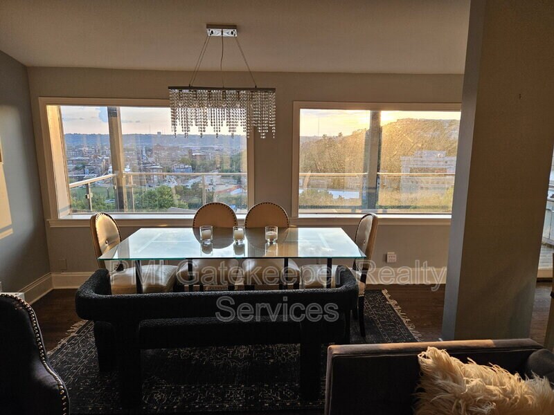 Views, views, views! Mt. Adams historic charm meets tastefully renovated modernity in this glamorous 19th century open concept, 3-story home. Enjoy your morning coffee in a chic, modern kitchen, with an oversized white marble island countertop, overlooking the sunbathed City skyline. Relax on the two new (July 2023) large west-facing Trex decks (totaling 550 square feet!) which are enclosed by sleek, modern glass and silver metal railings, with modern patio furniture included, and opening up to breathtaking, unobstructed, panoramic views of the City! Boasting 3 large bedrooms and 4 full bathrooms, 3 of which are en suite, this spacious home features a stunning gourmet kitchen with open-plan dining room, complete with a full wall of City-view windows, and two living rooms with fireplaces, one of which features a remote-controllable gas fire. Located in the heart of vibrant, upscale Mt. Adams, the house has a prime location, adjacent to Eden Park, a few steps away from the Art Museum, the Playhouse, and all the wonderful bars and restaurants that make Mt. Adams a Cincy destination. Ida Street remains the most prestigious street in Mt. Adams, known for its unmatched City views and proximity to all the lively fun that Mt. Adams has to offer, but Ida Street also maintains uninterrupted quietness and provides a tranquil retreat from the vibrancy swirling around the main strip at the top of the hill. It’s an easy walk to neighborhood restaurants, shops, and such famous bars as the Blind Lemon and the Mt. Adams Bar and Grill. There is ample street parking (usually right in front of the house), and there is also a free parking lot at the end of the street, three doors away. In this home-oasis, the sun rises in the front living room, letting in the most beautiful morning light, and then the sun sets in the kitchen, dining room, master bedroom, and on both decks. Ideal for throwing dinner parties, or just relaxing with a cocktail, watching the sun set at the end of a hard day’s work. The many modernizations of the house include a digital touchscreen Yale front door lock, two smartphone-controllable Nest thermostats (which independently manage the heat and AC on the top two floors, for efficiency), upstairs front-loading washer/dryer and laundry room, a motorized drawer-style microwave, a wine refrigerator, and a renter-controlled Ring doorbell, for peace of mind. Many of the elegant and unusual light fixtures throughout the house have smart switches that look and work like regular, manual dimmer switches, but which can also be controlled via smartphone, or with voice commands to Alexa or Google Assistant. Large walk-in master bedroom closet, and ample storage throughout. Garden maintenance is included. Pets welcome! (No dangerous breeds.) The back lawn is fenced in to accommodate your lucky furry friends. Includes $30 Tenant Benefits Package. Renter’s insurance with $300,000 liability coverage required. The home is currently fully furnished, but the owners are open to the possibility of renting the home unfurnished. Lease term 12 months. The house is named TARDIS by its British owners, after the Police-Box space- time travel machine in the famous British TV show “Doctor Who”, because the house is much larger on the inside than seems physically possible looking at it from the outside. Visit the TARDIS, and you will see for yourself! Pet Details: No danegerous breeds