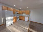 These approximately 800 square foot townhomes are all 2 bedrooms, 1 bath and are set up condo-style with upper and lower units. All units feature natural gas fireplace in the living room, beautiful cabinetry and millwork, walk-in closet in one-bedroom, ceramic tile and carpet. Appliances include stove, fridge, dishwasher and stackable washer and dryer. The upper-level units are all the odd numbered units and have main floor entry with no stairs. Patio door and deck off the living room. The lower-level units are all even numbered units and have a small entryway off the garage and stairs to get down to the living area. Under stair storage and a patio off the living room in lower units only. Tenant pays all utilities. Rent includes lawn care and snow removal. Central air and forced air natural gas heat. This property is pet friendly with prior approval, vet records and applicable deposits and fees due prior to move in. Available 6/8/2026 $1300/month 12 month lease **All information deemed accurate but not guaranteed**