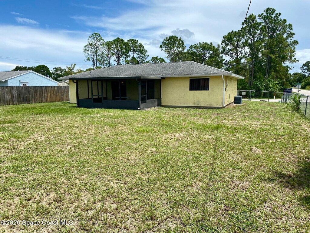 Gorgeous 2/1 single family home located in quiet neighborhood in SE Palm Bay. Ready for new tenant,this home has lots of natural light,tile flooring throughout,spacious living room,enormous screened porch,fenced in back yard and one car garage. Additional lot next door can also be used to store your boat or RV. Priced to rent,includes washer,dryer and lawn care. Well water and septic so your only responsibility is electric and internet. Sorry,no pets or smoking. Quiet neighborhood. Close to shopping (Bayside Lakes Publix) and I-95 for quick access to where you need to go! MLS # 1068362