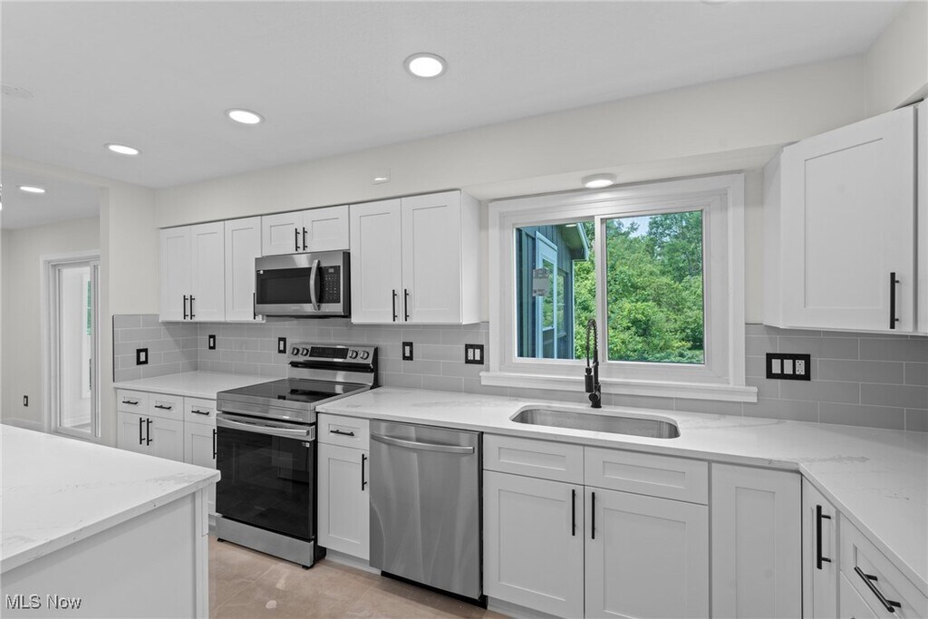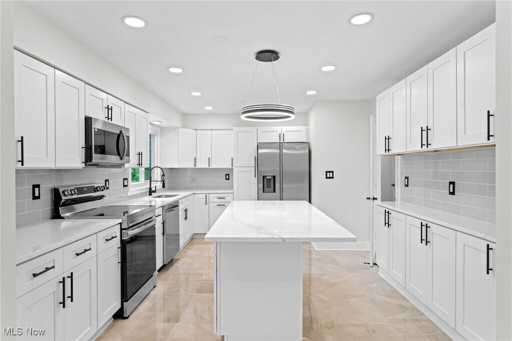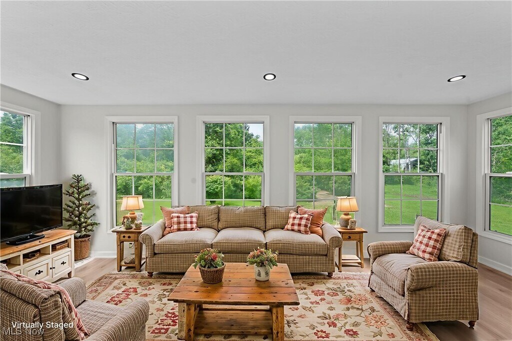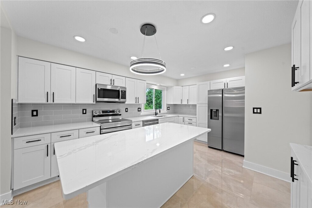 Welcome to your dream home in the heart of Chesterland! Nestled on a serene 1.71-acre lot,this completely renovated 4-bedroom,3-bath beauty offers 2,470 sq ft of luxurious living with modern finishes and timeless charm. Step inside to discover a bright,open layout with new LVP flooring throughout,recessed lighting and three cozy fireplaces that create warmth and character in every corner. The sunroom with a fireplace and wall of windows is the perfect retreat for all seasons. The heart of the home - a stunning chef's kitchen - boasts porcelain tile flooring,a large quartz island,quartz countertops,shaker-style soft-close cabinets,and brand-new stainless steel appliances,including a washer and dryer. All three full bathrooms have been tastefully remodeled in 2025,featuring elegant walk-in showers and high-end finishes. You'll also appreciate the new roof,new windows,new interior & exterior paint,and brand-new sidewalk - all completed in 2025. The spacious,insulated 4-car attached garage provides comfort and convenience year-round,and the two separate living areas offer plenty of space for both entertaining and everyday living. With a newer furnace and AC,all the major updates are complete - just move in and enjoy peaceful living on a quiet,tree-lined street with easy access to amenities,top-rated West Geauga School District,and parks. Don't miss this one-of-a-kind opportunity to live in a turnkey home on a picturesque lot in Geauga County!