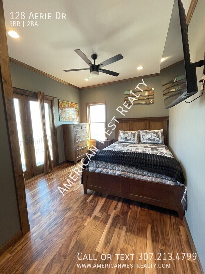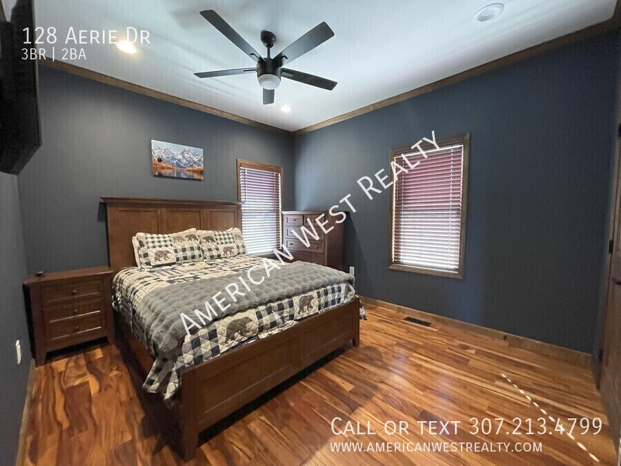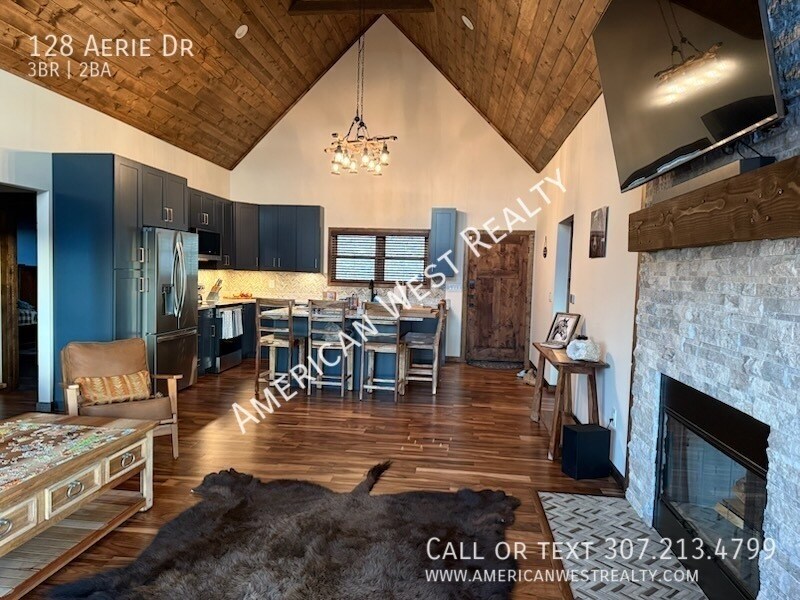 Stunning views year-round from this like-new 3bed/2bath home with garage and storage space. The home is fully furnished (as pictured) and includes utilities! The open floor plan has recessed lighting, vaulted ceilings, lots of natural light. You'll immediately notice the beautiful kitchen with granite countertops, steel appliances, a large island with breakfast bar, and abundant storage. The living room is well furnished and tasteful. Cozy up in front of the fireplace while watching your favorite movie streamed from the included StarLink internet system (included) or step out onto the spacious deck overlooking Wapiti valley for your favorite beverage and million-dollar views. The primary bedroom features two closets, a beautiful en-suite bathroom, and a door that leads directly out to the deck. There are two more bedrooms and a full bath on the opposite side of the house. The bottom floor includes a one-car garage with an opener, a storage room, and an interior spiral staircase leading to the main floor. Forced air heat, air conditioning, gas fireplace. StarLink internet with speeds up to 100 Mbps. The HOA limits parking to two vehicles on the property, plus any additional vehicles that fit in the garage. You may not park trailers, RVs, campers, boats, or work trucks on the property. No pets. No Smoking. NOTE: 4x4 is highly recommended. Tenant responsible for snow removal of driveway. The road is typically clear and drivable, but there are rare snow events that can cause a temporary delay or closure. **Please call office for showings ** _______________________________________ A $50 Lease Preparation Fee is due with your Security Deposit. All residents are enrolled in the Resident Benefits Package (RBP) for $46.95/month, which includes renter's insurance, credit building, $1M Identity Theft Protection, HVAC air filter delivery, move-in concierge service, resident rewards program, and more! Learn more at TENANT RESOURCES > APPLICATION AND RENTING POLICY. _____________________ General requirements: All occupants 18+ must apply and be approved $30 application fee per person Submit a government-issued picture ID Prove combined income of 3x monthly rent _____________________ The information presented is deemed reliable, but is not warranted. Interested parties are responsible for inspecting and confirming the accuracy, completeness, currency, and status of all information before renting. _____________________ INVESTORS: Are you looking for professional property management or a sales agent? Contact American West Realty and Management today to learn about our services! Air Conditioning Central Air Ceiling Fan Deck / Porch Flooring Vinyl Plank Garage Heat Forced Air Heat Gas Fireplace Kitchen Dishwasher Kitchen Island Kitchen Microwave Kitchen Refrigerator Kitchen Stove / Oven Septic Utility Rocky Mountain Power Utility Well Water Views Washer/Dryer In Unit