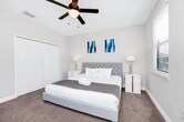 Welcome to Balmoral Estates at Waters Edge. This beautifully fully furnished, move-in ready luxury home features 3 bedrooms, 3.5 bathrooms, and a private pool offering comfort, style, and an effortless living experience. All three bedrooms are located on the second floor, each with its own full en-suite bathroom. The primary suite includes a spacious layout, double vanities, and premium finishes. On the main level, you'll find an impressive open-concept living area with high ceilings and abundant natural light. A large sliding door opens directly to the patio and pool, creating a seamless indoor-outdoor feel. The modern kitchen includes light quartz countertops, a generous island, and stainless-steel appliances. The fenced backyard offers privacy while you enjoy the large pool and outdoor space. Located just 35 minutes from Disney and 15 minutes from LEGOLAND, this property is perfect as a primary residence, second home, or a fully furnished, turn-key retreat ready for immediate occupancy. *Please note: You may view the property AFTER filling out an application, background and credit check. Renter is responsible for electric and water. Last month's rent is due day of move in. Renter is responsible for electric and water. Last month's rent is due day of move in.