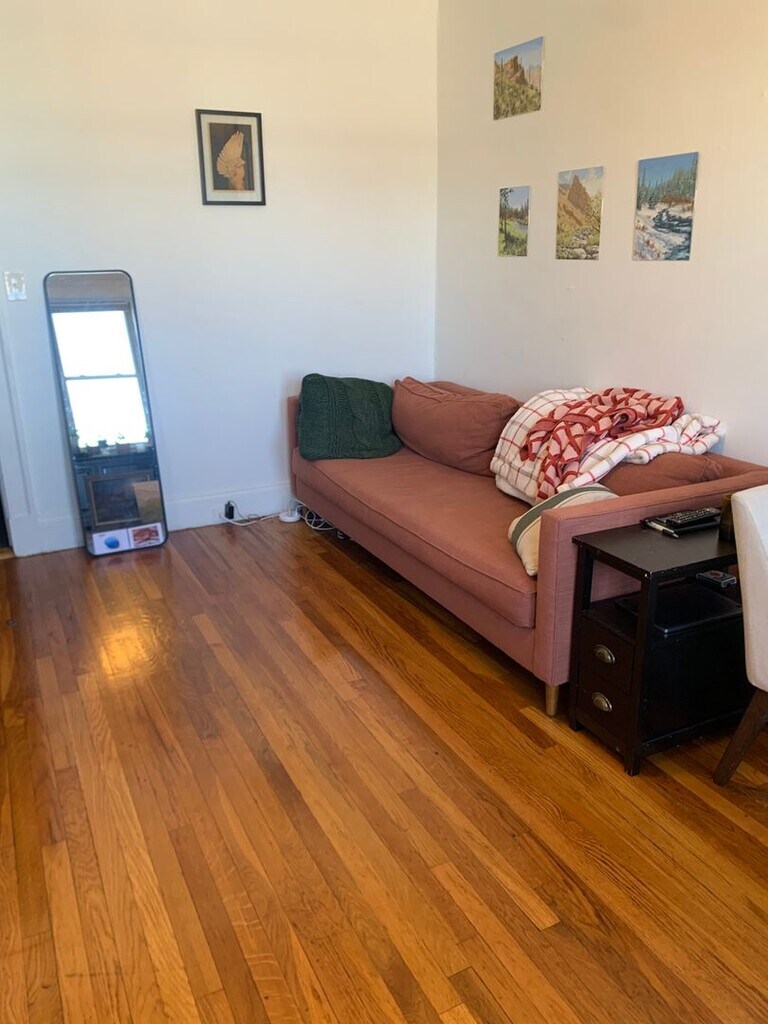 Bright, Spacious, Grad Student and Professional Friendly, Cat Friendly, Top Floor, 1BR/1BA steps from the Griggs St Green Line T Station! This sun-filled offering features high ceilings, an open floor plan, hardwood floors throughout, a spacious living room, a large bedroom, a modern, fully applianced kitchen with dishwasher, disposal and microwave, a modern bath, a private balcony, laundry on site and H/HW included!