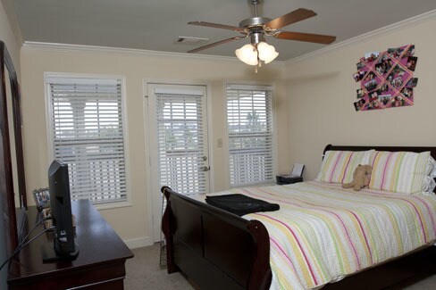 Located off of Thacker Road just south of Hwy 6 and only 3 miles from the University, Granite countertops, stainless appliances and hardwood floors. Separate laundry room. Master bedroom with large master bathroom is downstairs and opens to private back patio. 2 bedrooms and a jack and jill bathroom are upstairs and open to upstairs front porch.