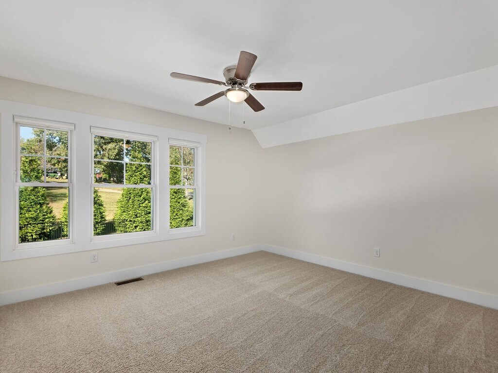 Absolutely darling two-story Craftsman-style home in a charming neighborhood setting. The Greenwood Fields neighborhood is nestled in countryside just north of Asheville’s city limits, about 5 miles from Weaverville’s charming historic business district, and a short drive to downtown Asheville. French Broad River boat access is minutes away. The open plan great room features a gas fireplace, plentiful recessed lighting, and pretty hardwood floors, with sleek shaker-style cabinets and granite countertops in the kitchen. Appliances include the refrigerator, gas range, microwave, and dishwasher. Off of the kitchen find the pantry, powder room, and laundry room. Enjoy great additional living space in the rear sun room! The fully fenced backyard is the perfect space to gather, grill, and garden with decking, flagstone paths, and raised beds. Upstairs are the three bedrooms and both full bathrooms. The primary bedroom suite includes a walk-in closet and an en suite bathroom with a large tiled shower and two-sink vanity. The hall bathroom has a combination shower/ bathtub and a large vanity. Each bedroom is carpeted and includes a ceiling fan. Central heat (natural gas) and central air conditioning (electric.) Tenant responsible for lawn care/ landscaping and all utilities including electricity, natural gas, and water/ sewer. Solar panel supported electricity for lower monthly expense! No smoking. No cosigners. One indoor cat is negotiable.