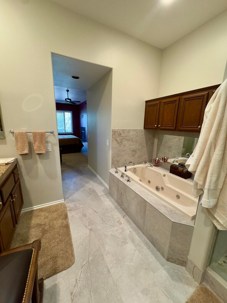Fabulous Location - Rancho Mirage Country Club Welcome to this stunning and thoughtfully remodeled 3-bedroom home in the prestigious Rancho Mirage Country Club. Offered furnished,this home features a spacious open floor plan with warm neutral tones that create a welcoming and elegant ambiance throughout. The combined living,dining,and kitchen areas are perfect for both relaxed living and entertaining. The chef's kitchen offers ample workspace and quality finishes,ideal for preparing meals and hosting guests. Step outside to a tranquil leisure area with a sparkling pool,spa,and built-in BBQ an entertainer's delight all set against a beautiful view that enhances the serene atmosphere. The luxurious primary suite includes a cozy fireplace and a beautifully updated en-suite bathroom with a soaking tub,dual vanities,a stall shower,and a generous walk-in closet with custom organizers. Additional highlights include ceiling fans throughout and a stylish double-door entry. Located close to world-class amenities,dining,shopping,and Eisenhower Health,this beautifully furnished home offers comfort,style,and a peaceful desert lifestyle. Available for Long Term lease.