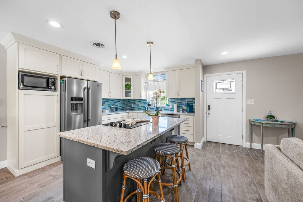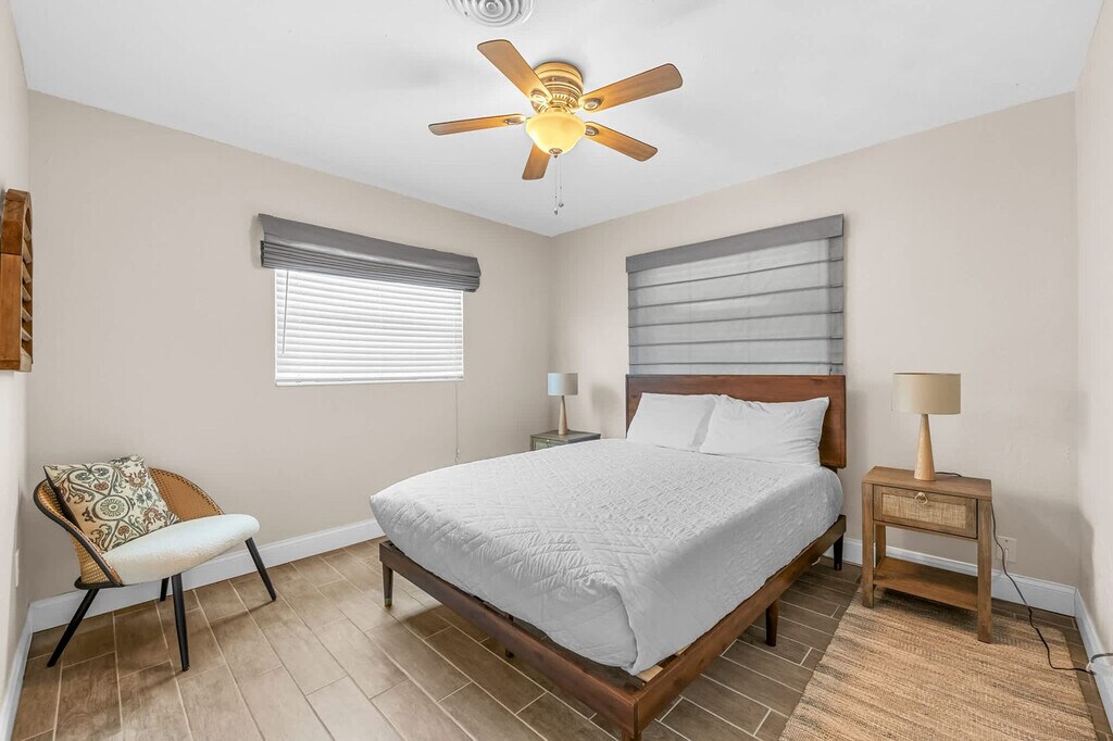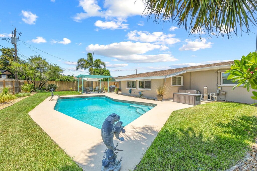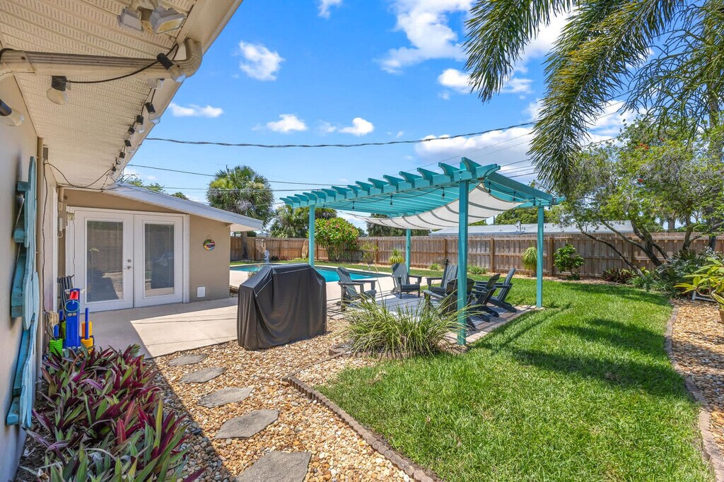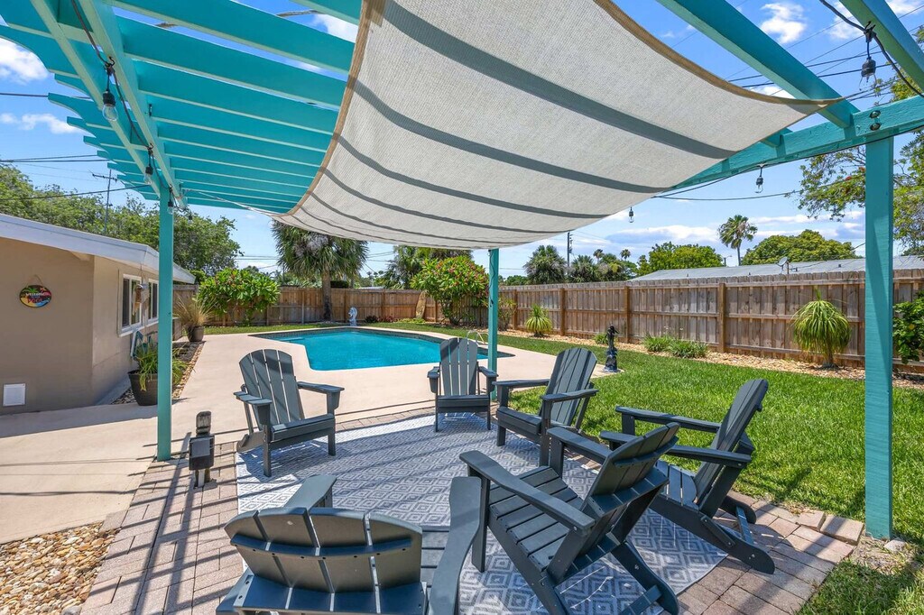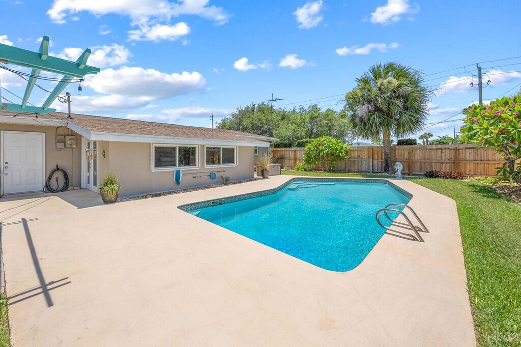 Welcome to Turtle Pointe, your perfect beachside escape in Satellite Beach, FL! This cozy and spacious 3-bedroom, 2-bath home is just a 5-minute drive from the ocean and offers everything you need for a relaxing Florida getaway. The primary suite features a king-size bed, smart TV, and private bath. A second bedroom has a queen bed, and the third includes two full beds — ideal for kids or extra guests. Both bathrooms are stocked with essentials, so you can settle in stress-free. Cook with ease in the fully equipped kitchen, complete with stainless steel appliances, a coffee maker, and everything you need to dine in. Outside is where Turtle Pointe shines — enjoy your private pool, lounge in the sun, or fire up the grill in the patio area. The fenced backyard offers privacy and space to unwind. Feel at home in this inviting space featuring two cozy living room areas perfect for relaxing, reading, or movie nights. The fully equipped kitchen boasts all the essential appliances and cookware, making dining in a breeze. Extras include fast Wi-Fi, smart TVs, a washer/dryer, and beach gear, ensuring a comfortable and convenient stay. The private backyard oasis features a sparkling pool, patio with seating and grill, and a fenced yard for privacy and relaxation. Located in quiet Satellite Beach, Turtle Pointe is just a 5-minute drive to the beach and close to lots of great restaurants and grocery stores. Only 20 minutes to Cocoa Beach and 1 hour to Orlando theme parks, you'll be close to the beach, local shops, restaurants, and a short drive to Cocoa Beach, Port Canaveral, and Orlando attractions. Indian Harbour Beach is a sought-after area that offers pristine beaches, excellent shopping, and delicious dining options. Spend your days surfing, sunbathing, or exploring the Brevard Zoo. With easy access to major highways, you're just a short drive away from incredible attractions such as Kennedy Space Center and Walt Disney World. Digital locks let you arrive and check yourselves in, but we’re here if you need us. Message us on the app if you need anything during your stay. For urgent matters, call the number provided. Pets are not allowed. Mailbox access is not available for guests. All reservations require either a refundable security deposit or the purchase of a damage waiver. Includes fast Wi-Fi and smart TVs for entertainment and work-from-home convenience. A laptop computer is not included. [SI]