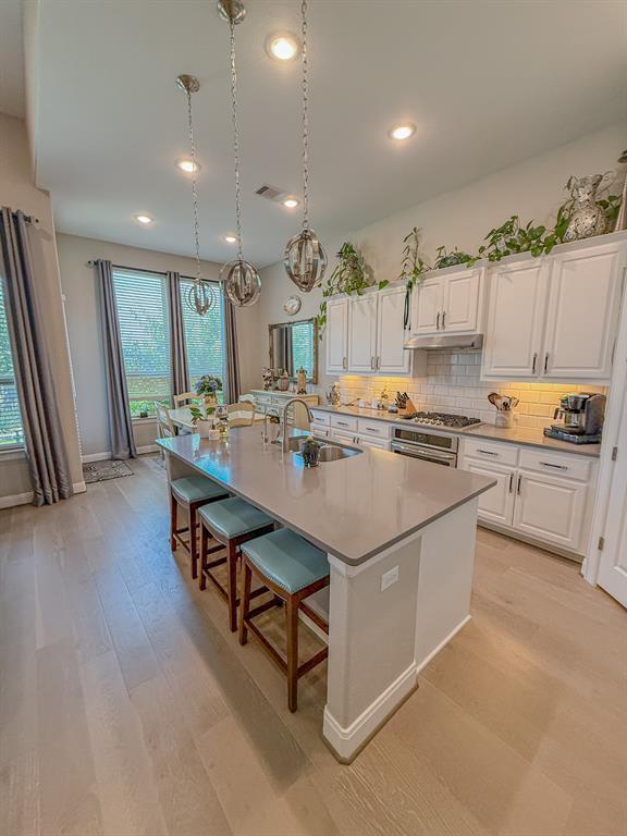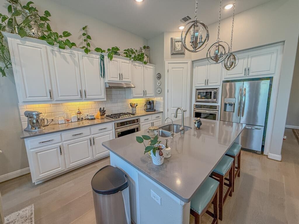 Stunning Highland home in Santa Rita Ranch. With 4 beds, 3 full baths, a dedicated office plus a formal dining, this home has the flexibility you need! Lovely engineered wood flooring covers the main areas of the home while carpeting in the bedroom adds coziness and comfort. Lovely high ceilings, beautiful details, and high end finishes bring the luxury to this home. Positioned on a corner lot this home also provides privacy inside and outside. Beautifully landscaped front and back yards await you! This home has a convenient location off of Ronald Reagan and has several amenities within the community. Come see why this is your next home!