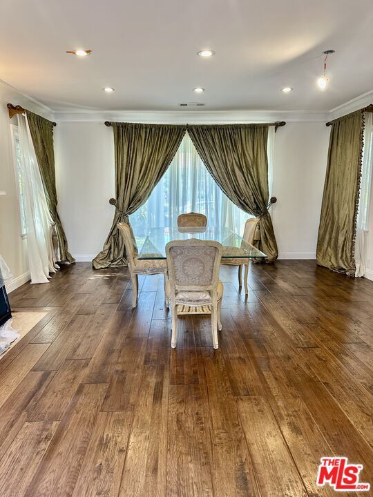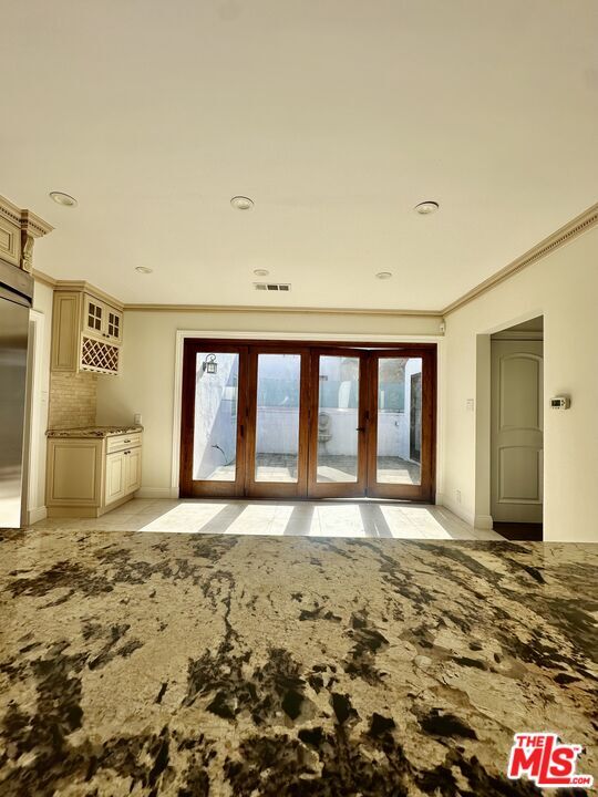 This beautifully and meticulously remodeled home is nestled in the heart of Beverly Hills. Bright and airy, it features an exceptional floor plan with seamless flow throughout.The main house offers 3 bedrooms and 2.5 bathrooms, including the primary suite with an ensuite bathroom and a walk-in closet. It also features a grand dining room, spacious living room, family area, and a generously sized courtyard. The chef's kitchen showcases custom marble countertops, a large center island, and built-in Thermador appliances. The family room opens to the kitchen and courtyard, creating a connected everyday living space. The courtyard extends the living area, flowing from the kitchen and family room to the dining and living rooms, making it seamless and ideal for entertaining. High ceilings and hardwood floors run throughout.The bright and beautifully remodeled guest house includes a bathroom and kitchenette, has separate access, and opens to the backyard.The backyard features fruit trees and alley access. The tranquil front porch overlooks a manicured lawn with trees and flowers and includes a security camera at the front door. The driveway accommodates a minimum of four cars (no garage). MLS# 26650035