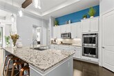 2018 one-story smart home in the gated Highpointe community, two blocks from the Sycamore Springs Elementary and Middle School bus stop. 5 bedrooms, 3 baths, and a true open layout with a gas fireplace and a large island kitchen with KitchenAid stainless appliances, breakfast bar seating, and plenty of storage. Fridge, washer, and dryer included. Recent updates include new appliances, fresh paint, and a whole-house reverse osmosis system (TDS reading of 8). The home also features app-controlled smart blinds, smart garage lighting, smart door lock, WiFi irrigation, and a 4K exterior security system. The primary suite has a large walk-in closet, double vanities, soaking tub, separate shower, and a sitting area overlooking the backyard. One guest bedroom and full bath sit near the front of the home. Two secondary bedrooms share a bath with dual sinks. The fifth bedroom is currently set up as a media room. Two bedrooms have walk-in closets. 3-car garage with Tesla charger. Backyard includes a covered patio, pool, and spa. Highpointe residents have access to three pools, a full gym, tennis and sport courts, hike and bike trails, and playgrounds. Just minutes to Belterra Village, EVO, and about 20 miles to downtown Austin. No smoking or e-smoking devices allowed inside the home. Lease includes weekly pool service, pest control, landscaping, HOA dues, and full access to community amenities. MLS ID 4045874
