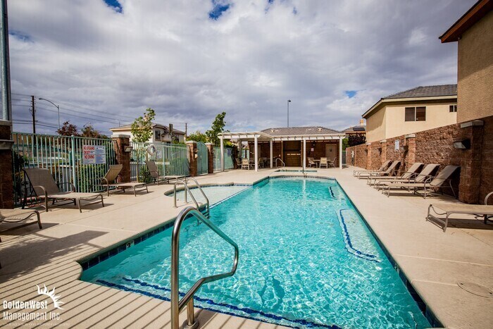 Beautiful 3Bdm 2.5Ba Home in Gated Community with Pool! The welcoming entry leads into a bright and open living room featuring high ceilings, large windows that invite plenty of natural light, and warm neutral tones. The kitchen features nice cabinetry, granite countertops, and stainless-steel appliances, including a refrigerator, built-in microwave, oven/stove, and dishwasher. Upstairs, you’ll find spacious bedrooms with generous closet space. The primary suite includes an ensuite bathroom with dual sinks, a large vanity, and shower, providing a perfect retreat at the end of the day. Additional bathrooms are thoughtfully designed with contemporary fixtures. Enjoy the outdoors in your private yard. The home also includes a washer and dryer, and a two-car garage. Located within a gated community, residents enjoy access to fantastic amenities including a sparkling pool and relaxing spa perfect for enjoying Las Vegas sunshine. Conveniently situated near local parks, quality schools, shopping centers, dining, and easy freeway access, this home combines comfort, style, and location to deliver an exceptional living experience. Tenant pays all Utilities. Pets with approval via the process This property allows self guided viewing without an appointment. Contact for details.
