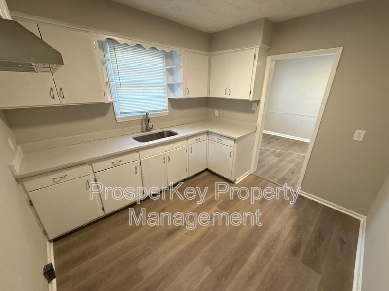 This freshly painted brick ranch home features stunning landscaping and a spacious fenced-in backyard, perfect for outdoor enjoyment. The kitchen boasts ample counter and cabinet space, complemented by a farmhouse-style sink. LVP flooring extends throughout the entire home for a modern and cohesive look.