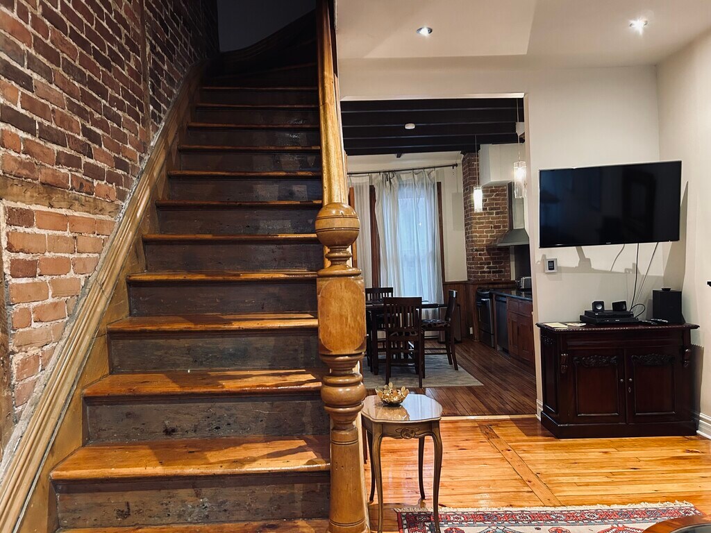 Beautiful 2 Bedr apartment on 2 levels in the heart of Montreal, close to Metro, Old Port, shoos and restaurants. Beautifully furnished , fully equipped kitchen , wifi , cable , wash a bine / dryer in the unit . Located in an unique, historical house .