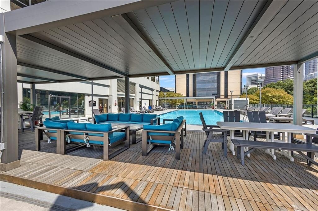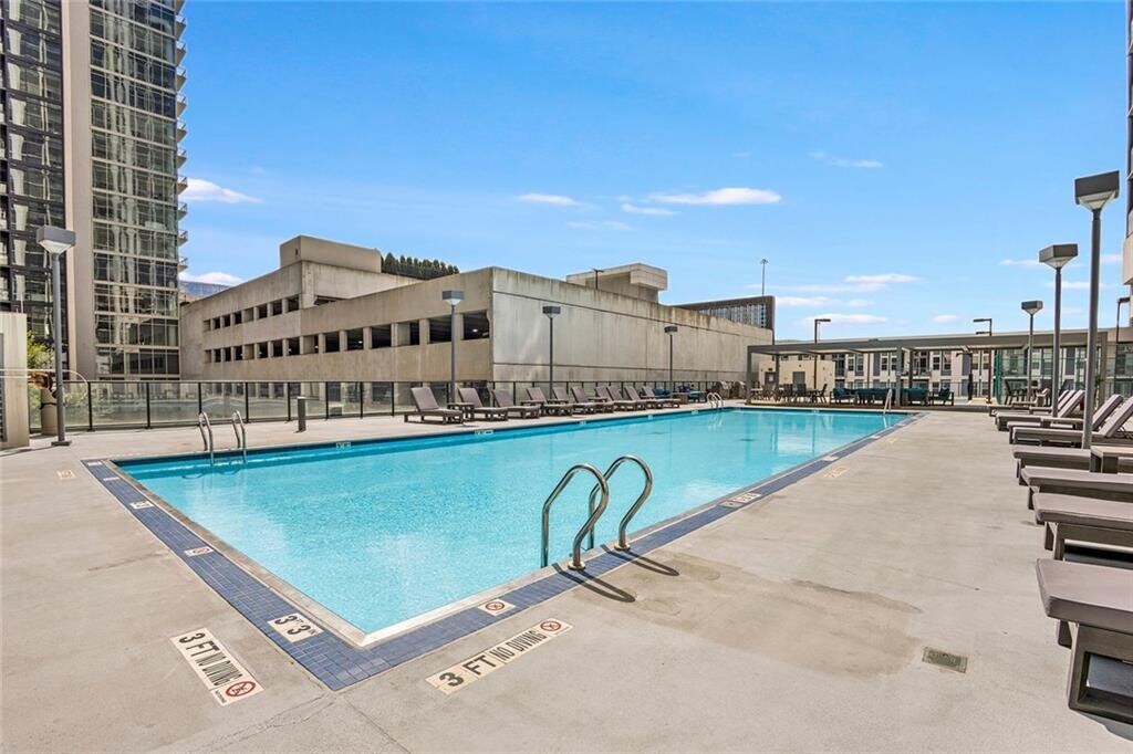 Welcome to Unit #3304 at 1280 West,a recently renovated 1-bedroom,1-bathroom condo perched on the 33rd floor with stunning floor-to-ceiling windows and a private balcony that frame panoramic views of Downtown Atlanta,Mercedes-Benz Stadium,and Atlantic Station. Inside,the home features wide-plank luxury vinyl flooring,fresh neutral paint,and an open living/dining layout perfect for entertaining. The kitchen is updated with granite countertops,stainless-steel appliances,ample cabinet storage,and a passthrough to the main living area. The spacious bedroom offers direct balcony access,dual closets with mirrored doors,and a bathroom with a double vanity,granite counters,and updated fixtures. 1280 West offers unmatched amenities,including a fitness center,pool,tennis/pickleball courts,racquetball,half-court basketball,outdoor track,grilling stations,business center,billiards lounge,and 24-hour concierge service. Just steps from the Arts Center MARTA station with direct access to the airport,Buckhead,and Sandy Springs,and minutes from Piedmont Park,Atlantic Station,GA Tech,and the city’s best dining and entertainment,this location offers true Midtown convenience.