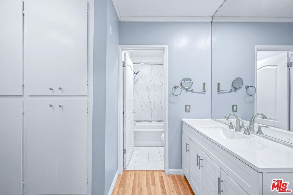 Welcome to this beautifully updated top-floor 2-bedroom, 1-bath condo in the heart of Studio City, offering privacy, treetop views, and a peaceful retreat with a private balcony to enjoy morning coffee or evening downtime. The modern kitchen features contemporary cabinetry, quartz countertops, and stainless steel appliances, opening to a bright living area highlighted by recessed lighting and a statement chandelier. The primary bedroom includes newly installed recessed lighting, a ceiling fan, and a spacious walk-in closet, while the second bedroom offers its own closet and a flexible layout ideal for guests or a home office. New vinyl plank flooring throughout adds a clean, modern look while minimizing noise, and the upgraded bathroom showcases a new bathtub, ceramic tile, modern vanity, and stylish fixtures. Additional highlights include a newer HVAC system, added hallway cabinetry, and thoughtful storage upgrades. Community amenities include a heated pool, sauna, two assigned parking spaces, secure access, and laundry facilities on every floor. Ideally located near Ventura Boulevard, The Shops at Sportsmen's Lodge, Ralphs, Whole Foods, Fryman Canyon, and with easy access to the Westside, this move-in-ready condo delivers stylish, convenient Studio City living. MLS# 26640319