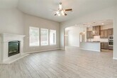 Perfectly located within the Centennial School District, this home combines style, comfort, and convenience.This stunning single-story home offers thoughtful design and modern features throughout. With a Cast Stone Fireplace with Gas Starter, a Covered Patio, and a flexible floor plan that includes both a dedicated Study and Flex Room, this residence seamlessly blends comfort and versatility. Step inside to find wood-look tile flooring that adds elegance and durability. The open-concept layout creates spacious entertaining areas while also allowing for quiet retreats when needed. The chef-inspired kitchen boasts stainless steel appliances, a central island, a double-door pantry, and abundant counter space—making meal prep effortless while keeping you connected to family and guests. he primary suite, privately tucked away from the main living area, offers the perfect retreat with a large bedroom and luxurious ensuite bath. Two additional bedrooms are thoughtfully placed at the front of the home, each with easy access to a full bathroom and a convenient powder room.