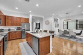 Enter your new home through a beautiful paned front door & immediately notice gorgeous wooden floors. Your kitchen has redwood cabinets, SS appliances & precious granite counters. A center isle that accommodates 3-4 stools finishes this area off nicely. With 2421 SF under AC, this spacious single floor home presents an open concept living area with modern in-ceiling lights. Further, it has convenient powder room for guests & 3 bedrooms including large master with double closets, double basins, soak tub & glass enclosed shower. Your private pool surrounded by hedges for privacy makes this an outstanding home. Built in 2016, & owner occupied since then, this well-maintained home is in a modern, well-groomed gated community with heated pool, gym & events room. Near to I75, shops & services. MLS # A11865264
