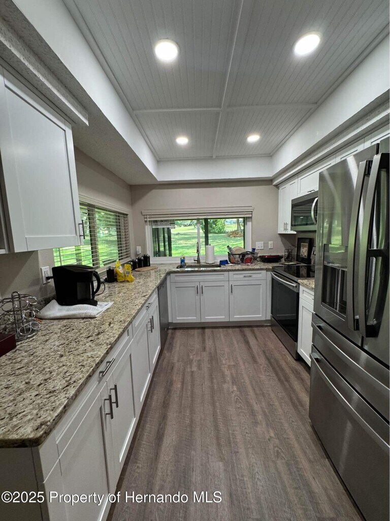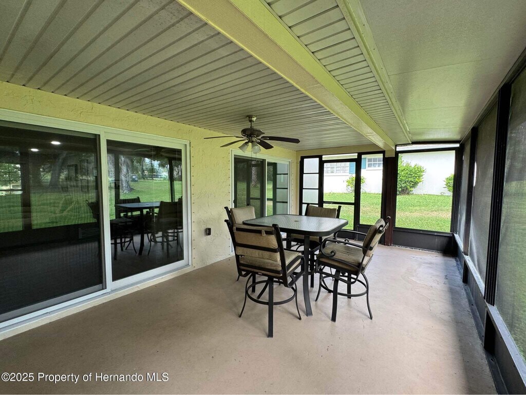 Welcome to this beautifully updated three bedroom, two bath, two car garage, golf course home, ideally situated on the eighth fairway of Beacon Woods. From your expansive, enclosed lanai, enjoy serene views just 85 yards from the center of the green. Everything in this home is brand new and built to modern hurricane resistant standards. A premium halo water system serves the entire house, and the lawn care is provided, giving you peace of mind and easy living. Inside, the light filled kitchen, boast granite countertops, and oak cabinetry, and a convenient pass-through lanai. The spacious living/dining room combo offers versatility for entertaining and relaxation. The primary suite easily accommodates a king size bed and features a walk in closet and stylish walk-in shower. Both guest bedrooms are generously sized with build in closets, and a 2nd bathroom also includes a walk-in shower. Located in the desirable Beacon Woods, golf and country clubs, residents enjoying a range of amenities, including a championship golf course (for additional fees) community clubhouse, heated pool, fitness Center, tennis court shuffleboard, boxy ball, and scenic walking trails. The neighborhood is beautifully landscaped and offers an active, and welcoming community atmosphere. This meticulously maintained home offers a perfect blend of comfort, convenience, and lifestyle. Don't miss out on this opportunity to live in one of Nature's Coast's most charming communities.