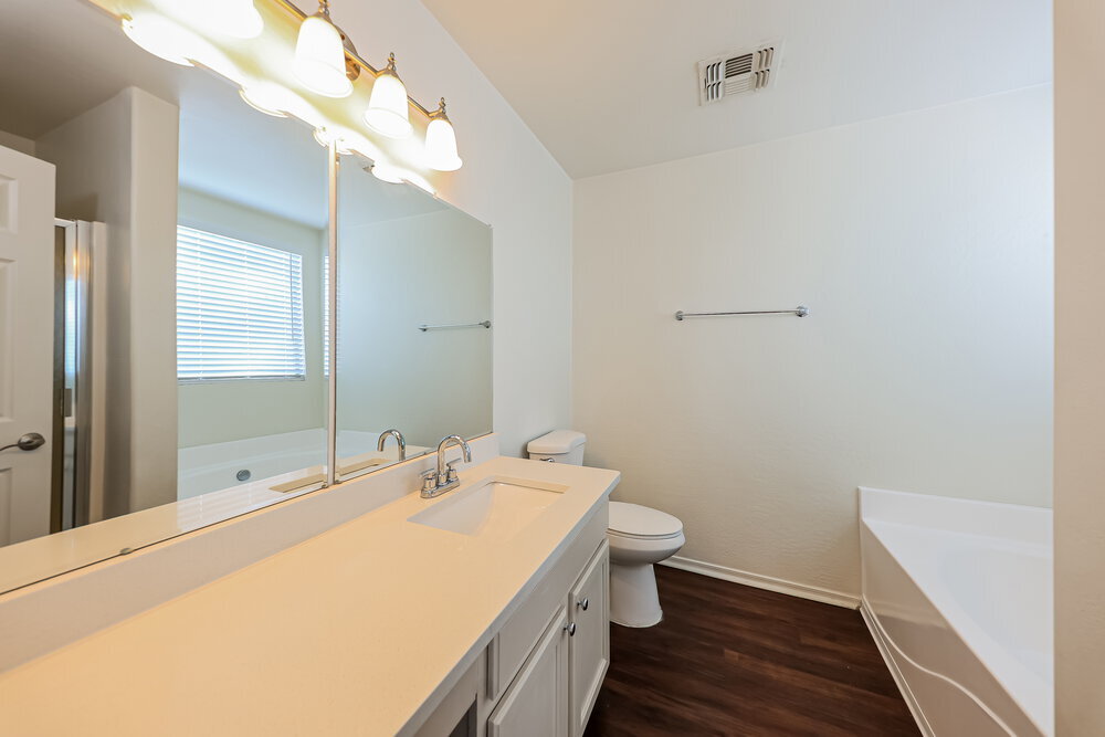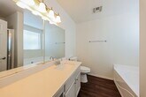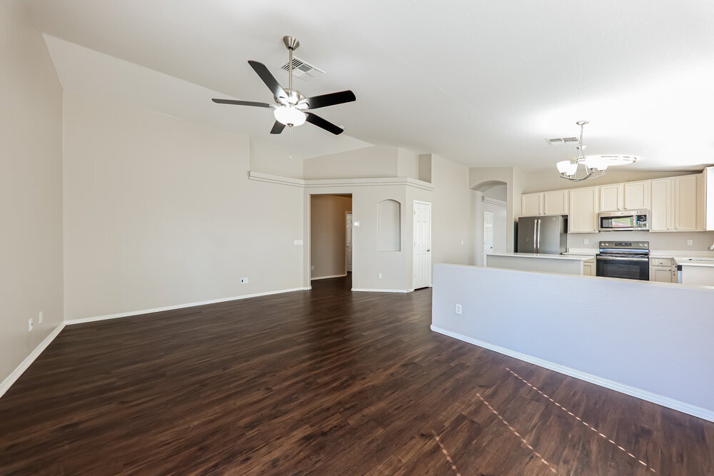 Please note, our homes are available on a first-come, first-serve basis and are not reserved until the lease is signed by all applicants and security deposits are collected. This home features Progress Smart Home - Progress Residential's smart home app, which allows you to control the home securely from any of your devices. Learn more at Rent this home by October 31, 2025 and receive $500. Want to tour on your own? Click the “Self Tour” button on this home’s listing or call to register for a self-guided showing at a time that works best for you. If you're looking for a move-in ready house in El Mirage, take a look at this rental home with three bedrooms and two bathrooms. The living room feels quite expansive, featuring modern vinyl plank flooring, an arched window, as well as a high ceiling. The eat-in kitchen looks stunning with its white quartz countertops and stainless steel appliances. Plus, it has a center island that provides more space to prepare meals. The main bedroom also has vinyl plank flooring, and it treats you to a four-piece en suite bathroom and a walk-in closet that can make it easier to keep your wardrobe organized. The covered patio provides lots of space for outdoor relaxation. Contact us to schedule a showing.