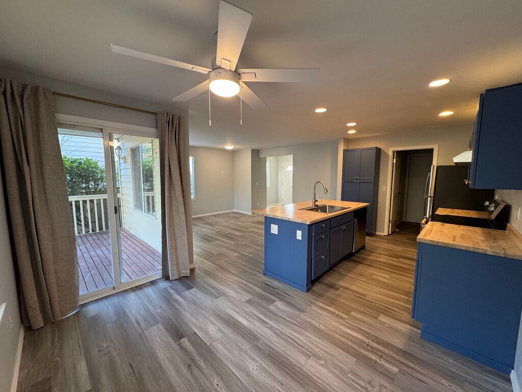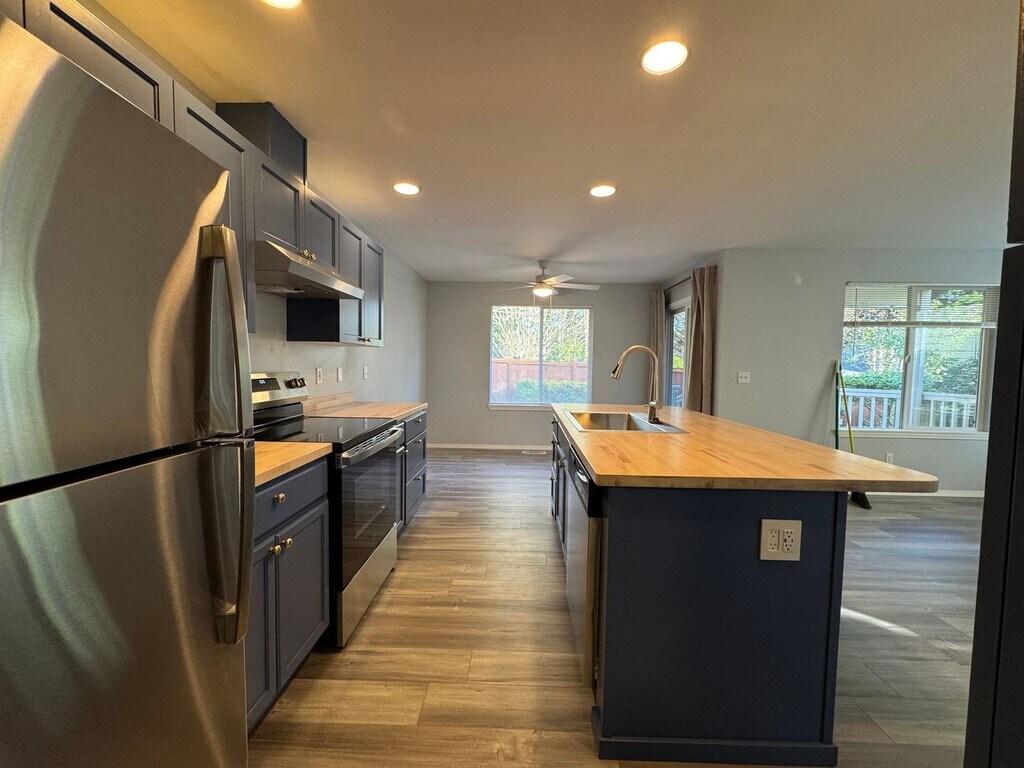 This beautifully updated townhouse in Silverdale offers 3 bedrooms, 2.5 bathrooms, and 1,372 sq. ft. of modern living space. The entire interior has been redone with new flooring, fresh interior paint, new lighting, and new carpet upstairs. The kitchen is fully updated with brand new stainless steel appliances, including a refrigerator, range, dishwasher, and sink. The main level features an open-concept layout connecting the kitchen, dining, and living areas, centered around a large butcher block island with bar seating. A modern washer and dryer are included on the main floor for convenience. Outside, enjoy a fully fenced and manicured backyard. The attached 2-car garage includes storage racks and additional space for gear and household storage. A full month’s rent, a security deposit equal to one month’s rent, and a $350 nonrefundable administrative fee are due upon move-in. For showings or questions, please email . Application guidelines and more information are available at Video Tour: