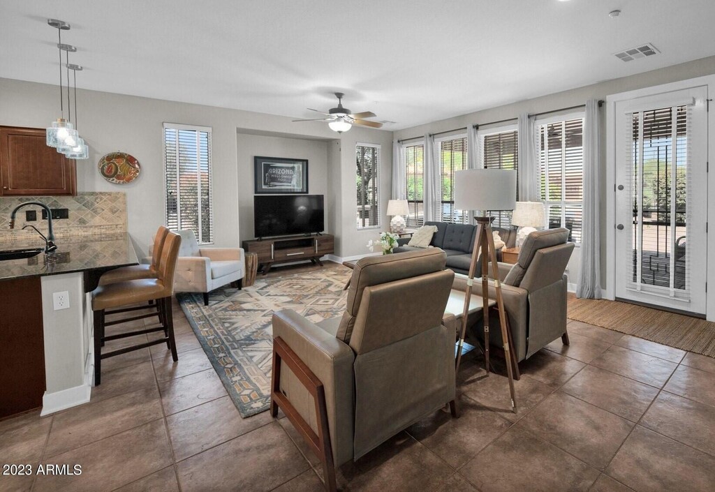 AVAILABLE May 1 through October 31,2025 GREAT SUMMER RATES. ACTIVE ADULT COMMUNITY has resort-style amenities. You will fall in love with this SEASONAL fully furnished Flora model. Cozy courtyard leads you to an open floor plan w/2bedrooms/2baths/den. Access the courtyard from the kitchen for morning coffee or sit on your shaded covered patio with built in gas barbecue,fire pit,built in seating with privacy walls and cozy outdoor furniture. The backyard has attractive fencing and professional landscaping highlighted by active lemon,orange,and grapefruit trees. Inside enjoy the dream kitchen with dark cabinetry,granite,plenty of pantry storage and stainless steel appliances. The upgraded items such as: flooring,bathrooms,smart TVs. WiFi enabled printer,window treatments and outdoor bag chairs,bicycle,make it easy to call home.