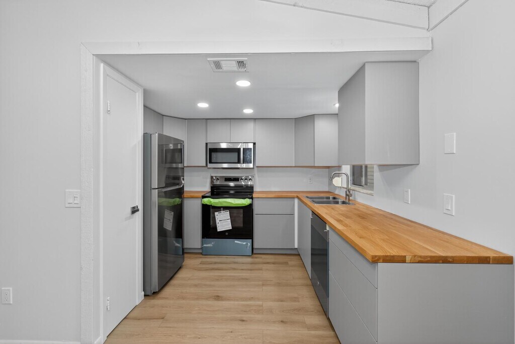 Move-in ready home featuring a full renovation with brand-new A/C, new appliances, new flooring, a new kitchen, and updated bathrooms. The layout offers spacious, nice-sized bedrooms, a bright, airy interior with great natural light, plus a patio for relaxing or entertaining. Two-car garage and located in a quiet, peaceful neighborhood.