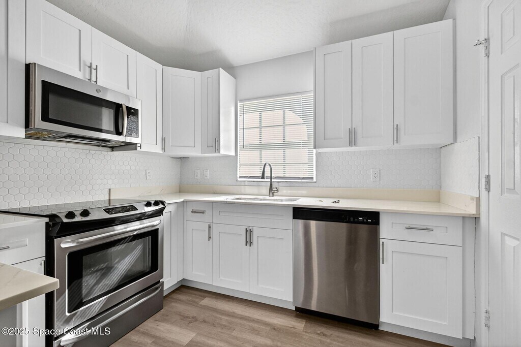 Lovely 3 bedroom/ 2 bathroom home with a 1-car garage and multitude of upgrades for rent in the quiet and friendly Betmar Walk community in Palm Bay! A quick drive to sandy east-coast beaches! Beautiful interior featuring NEW luxury vinyl flooring and new paint throughout,ALL NEW kitchen with new cabinets,backsplash,granite countertops and brand-new stainless steel appliances! Spacious master bedroom has an en suite with a stand-in shower and walk-in closet! BOTH bathrooms have been fully remodeled with new mirrors,vanities,toilets and retiled showers. There is also a community pool. NO SMOKING ALLOWED. 12-month lease. Utilities not included. Reach out to agent for viewings and questions!